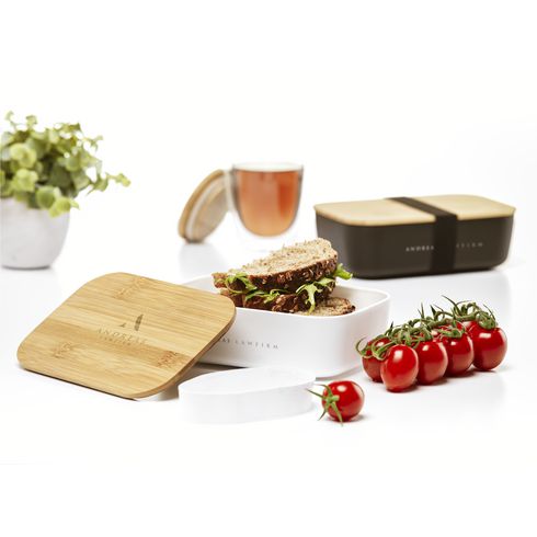 Obszerne pudełko na drugie śniadanie wykonane z tworzywa PP. Pokrywka wykonana jest z naturalnego bambusa. Elastyczny pasek gwarantuje, że pokrywa pozostanie na swoim miejscu podczas podróży. UWAGA: Ze względu na naturalne słoje i kontury bambusa nie możemy zagwarantować spójności głębokości/koloru graweru.