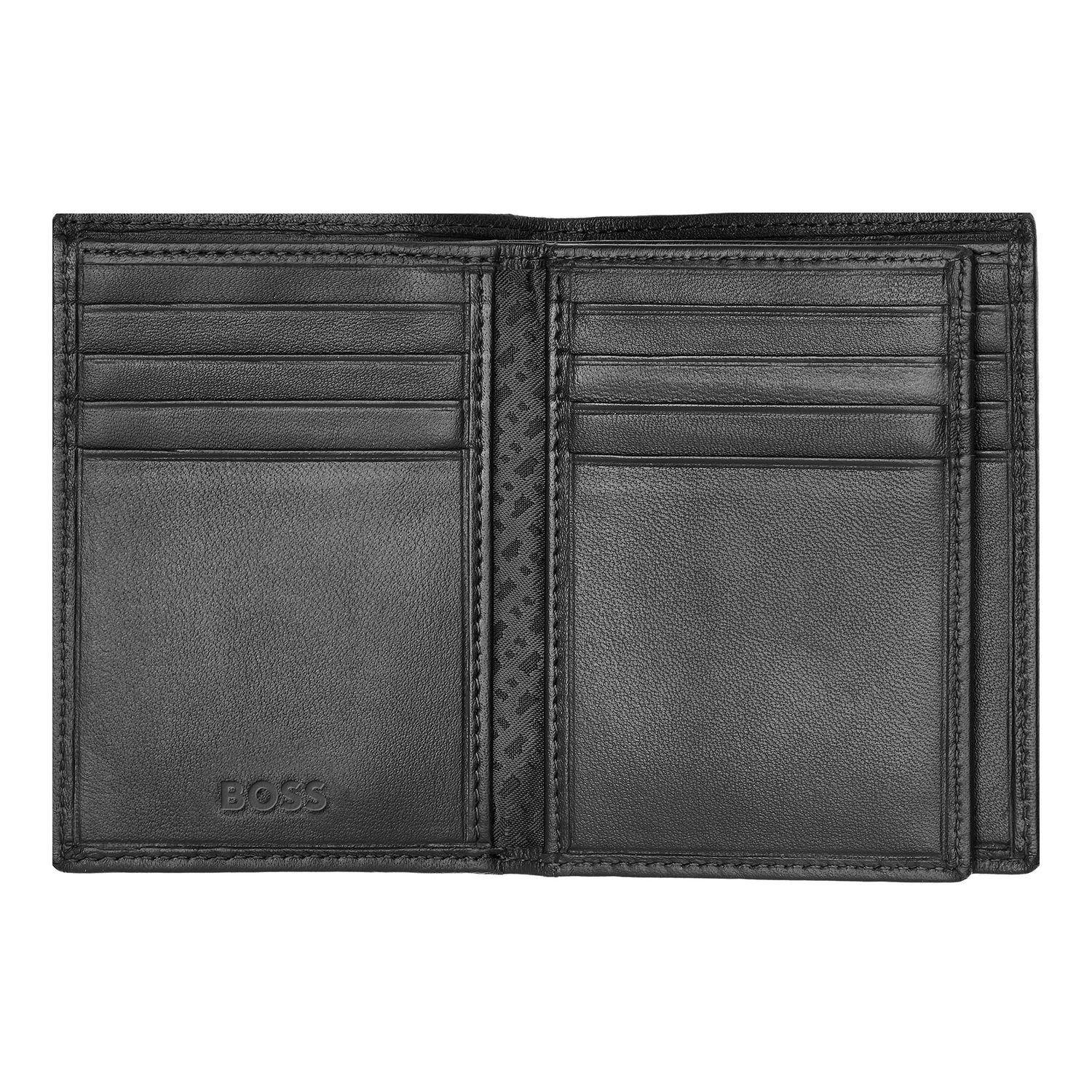 The Boss Classic Smooth line is Boss ultimate minimalist, timeless small leather goods offering, characterized by carefully chosen leathers and understated aesthetics. All pieces are masterfully crafted and signed with crisp chrome Brand plates, along with monogram linings. The designs are available in black and brown. This card holder with flap includes : 2 currency compartments 16 card slots 5 side compartments