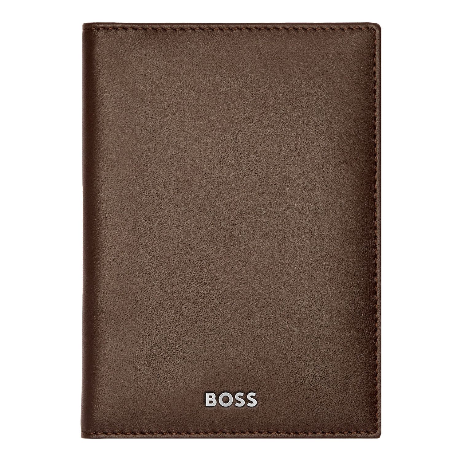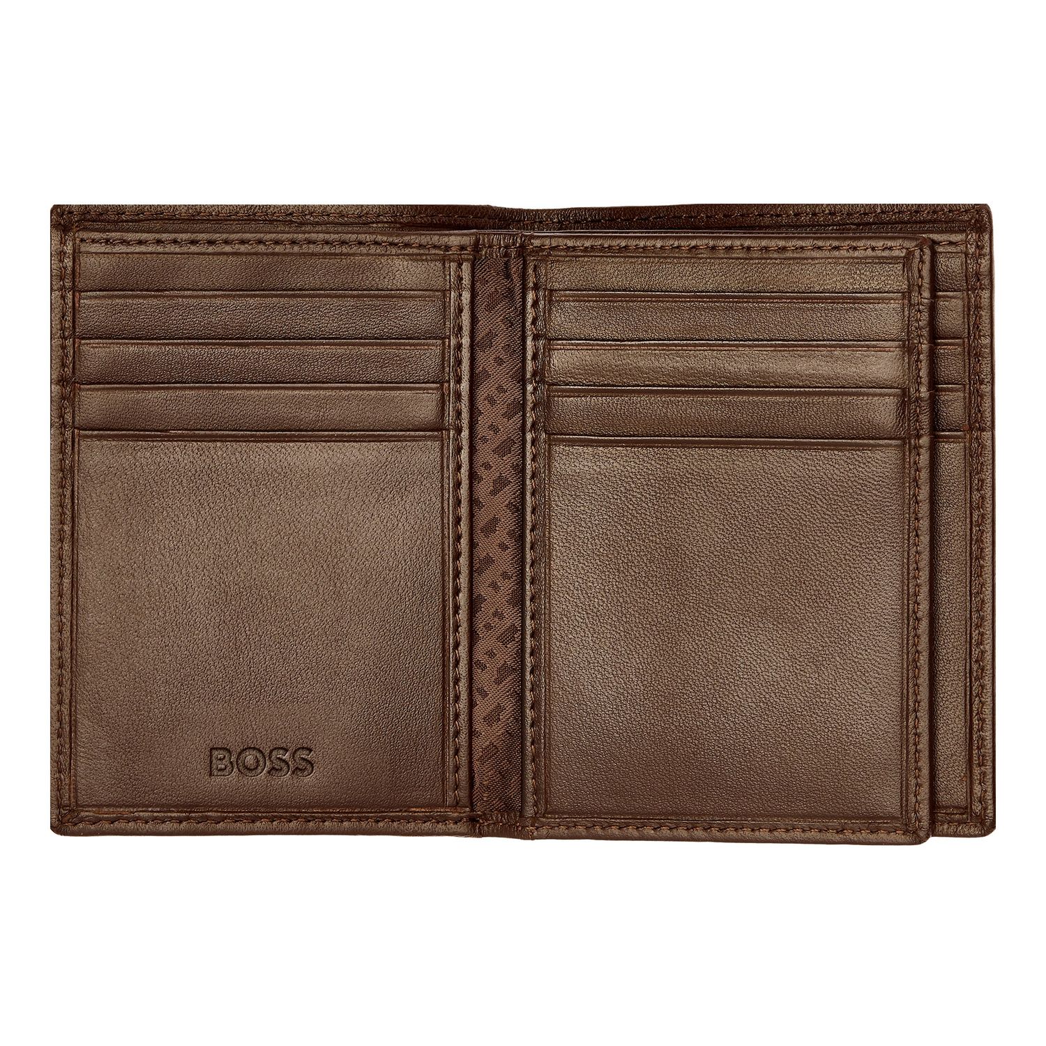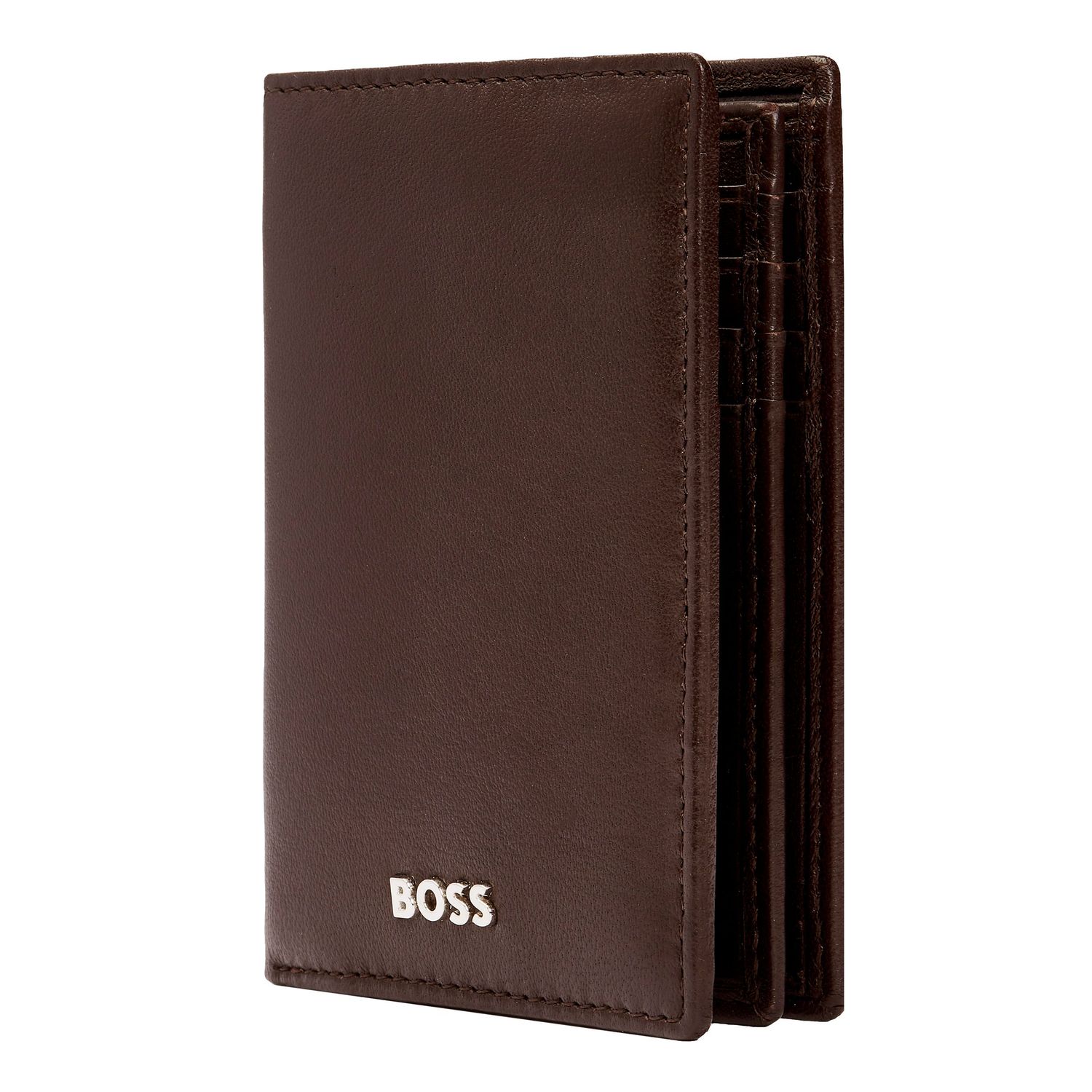 The Boss Classic Smooth line is Boss ultimate minimalist, timeless small leather goods offering, characterized by carefully chosen leathers and understated aesthetics. All pieces are masterfully crafted and signed with crisp chrome Brand plates, along with monogram linings. The designs are available in black and brown. This card holder with flap includes : 2 currency compartments 16 card slots 5 side compartments