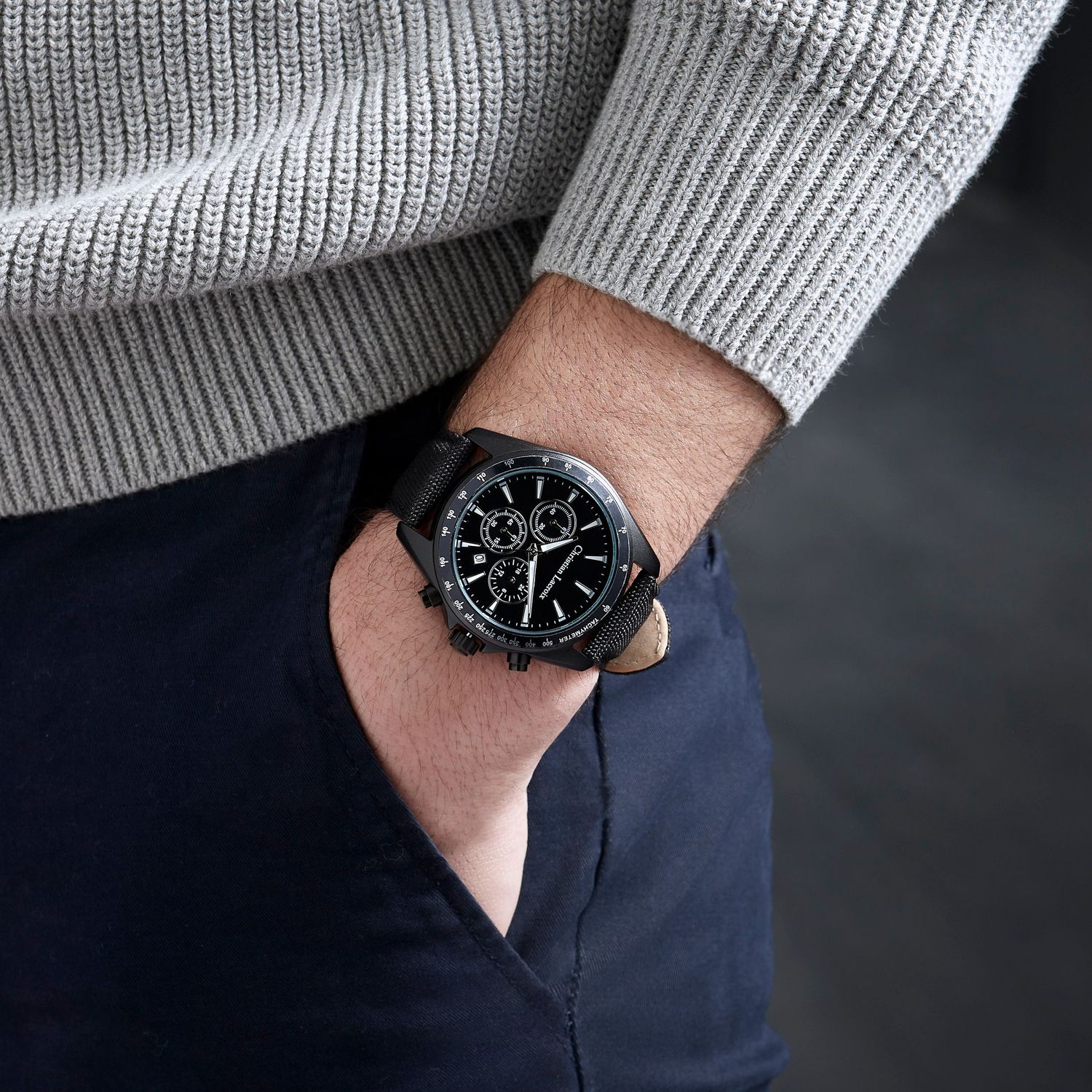 Przedstawiamy zegarek „Caprio” marki Christian Lacroix, nowoczesny i modny czasomierz zaprojektowany dla osób o wymagającym guście. Ta wersja posiada specjalną bransoletę z tkaniny i prawdziwej skóry, oferując wyjątkowy i luksusowy akcent. Całkowicie czarny design w połączeniu ze srebrnymi detalami na tarczy emanuje współczesnym wyrafinowaniem. Dzięki zaangażowaniu tej samej marki w jakość, zegarek „Caprio” jest idealnym połączeniem stylu i innowacji. Podnieś swoją odzież na nadgarstek dzięki temu charakterystycznemu i nowoczesnemu zegarkowi od Christian Lacroix.