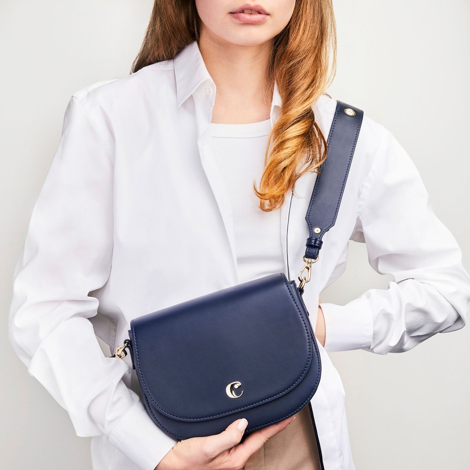 The Albane handbags are the perfect everyday accessory, with their saddle shape and luxurious feel thanks to their soft textures and golden signature. The retractable strap is enhanced with golden eyelets, adding a trendy touch to any outfit. These handbags are available in four vibrant tones: Navy, Yellow, Brown, and Nude.