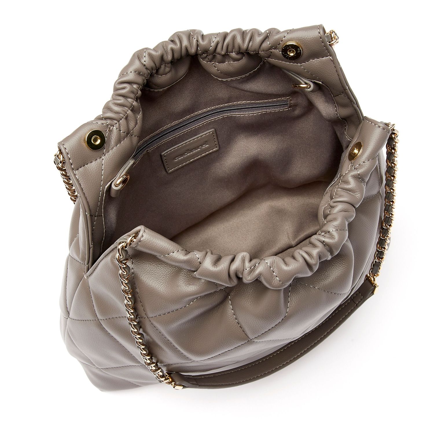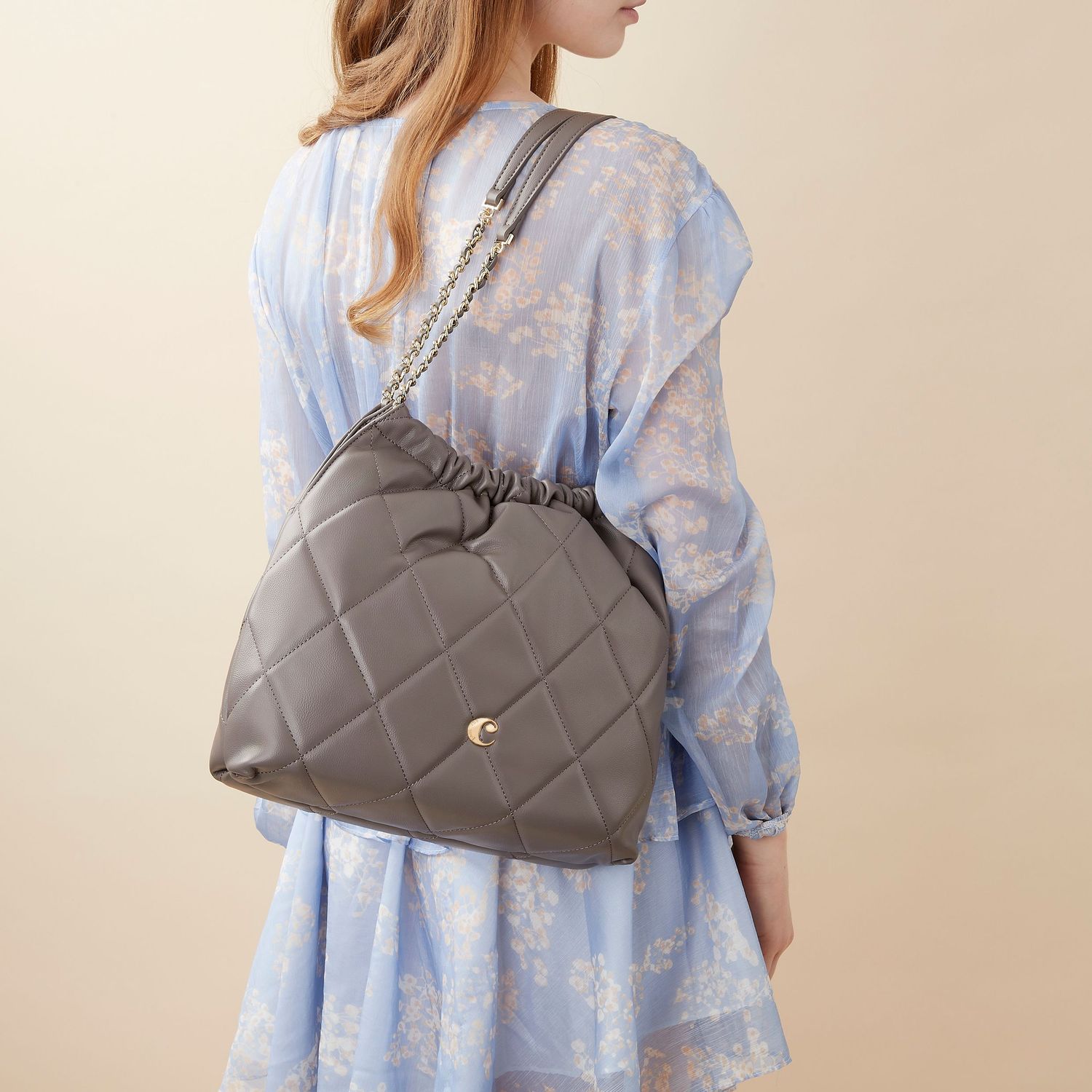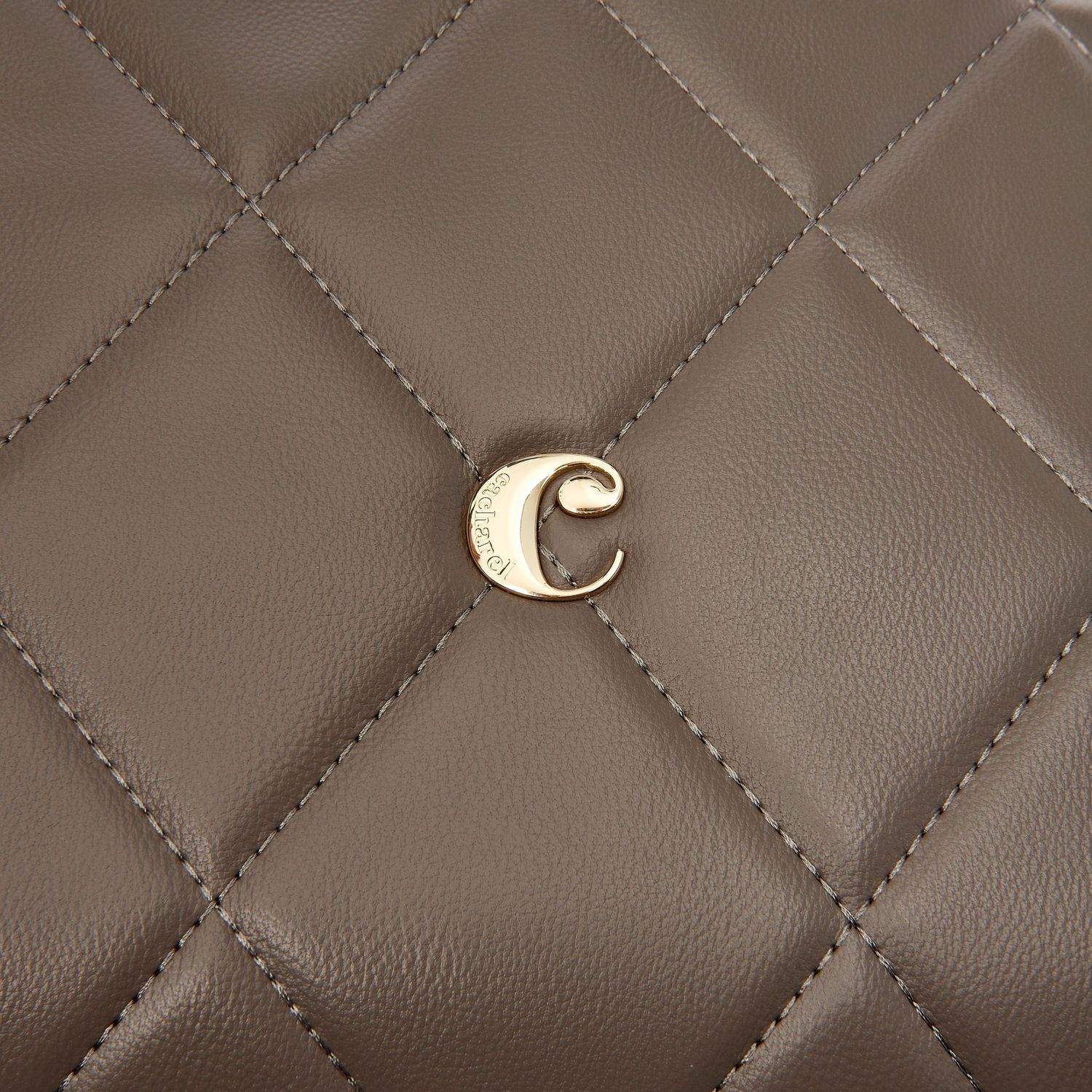 Torba Cacharel „Ambre” uosabia luksus dzięki starannie zaprojektowanym detalom. Pikowany materiał i podwójne logo, z wyraźną literą C z przodu i dyskretnym podpisem Cacharel w kolorze złotym z tyłu, dodają ponadczasowego uroku. Łańcuchowe paski na ramię nadają jej wystawnego charakteru, a pięknie teksturowana skóra wegańska zapewnia zarówno styl, jak i treść. Oferowana w eleganckiej neutralnej palecie kolorów czerni i taupe, nasza linia „Ambre” jest wyrazem wszechstronnej elegancji, dzięki czemu jest idealnym dodatkiem na każdą okazję