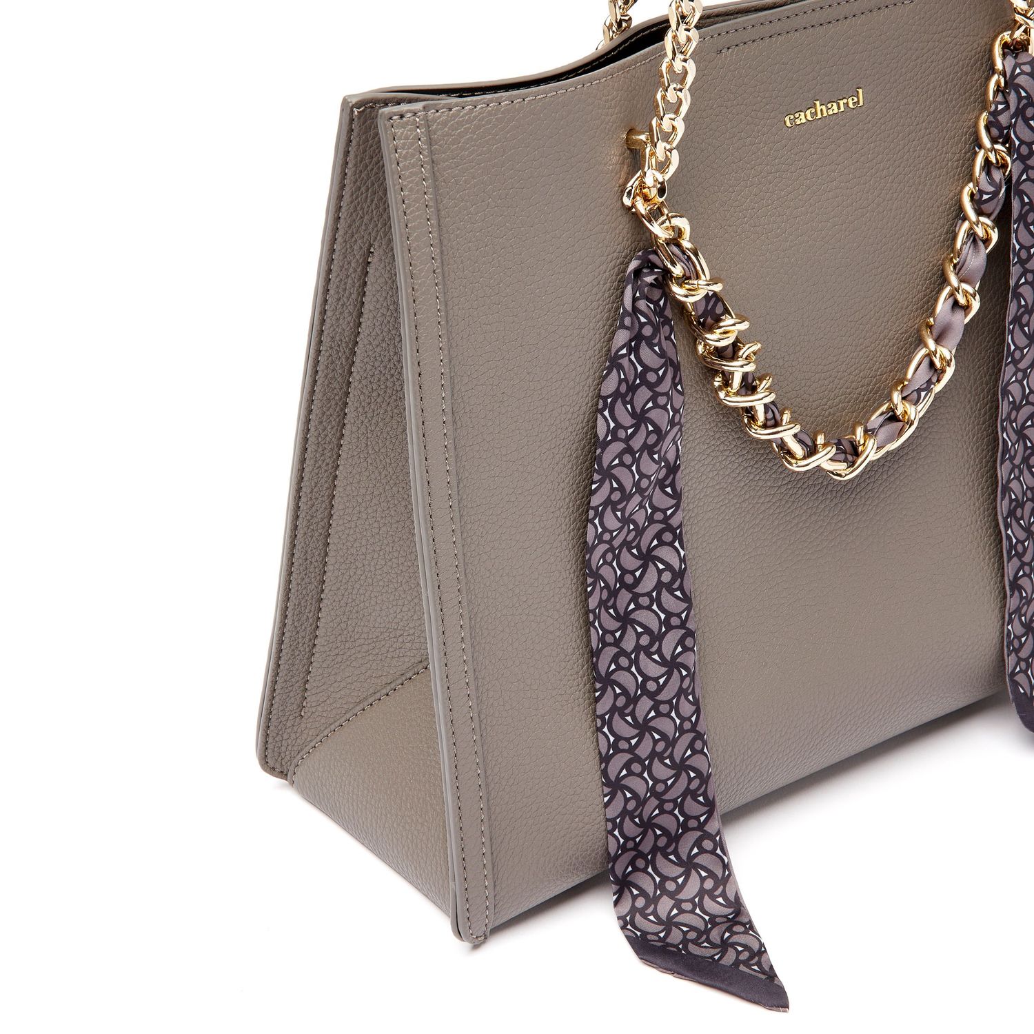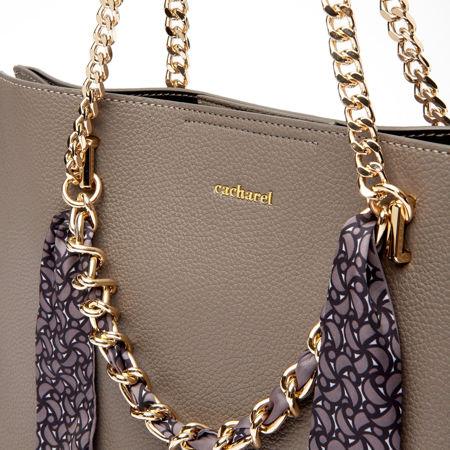 Torebka Cacharel „Amelia” bez wysiłku przechodzi z biura na wieczór, oferując idealne połączenie praktyczności i stylu. Dzięki dużej objętości torba ta zapewnia dużą pojemność na codzienne niezbędne rzeczy. Piękna matowa ziarnista faktura dodaje jej wyrafinowania. Wykonana z wegańskiej skóry, Amelia posiada przemyślane detale, w tym podwójny uchwyt do wszechstronnych opcji noszenia – w ręku lub na ramieniu. Unikalny akcent dodaje mały ozdobny nadrukowany szalik z niestandardowym wzorem monogramu Cacharel „C”. Oferowana w eleganckiej neutralnej palecie kolorów Black i Taupe, Amelia jest wyrafinowanym towarzyszem, który uzupełnia dynamiczny styl życia
