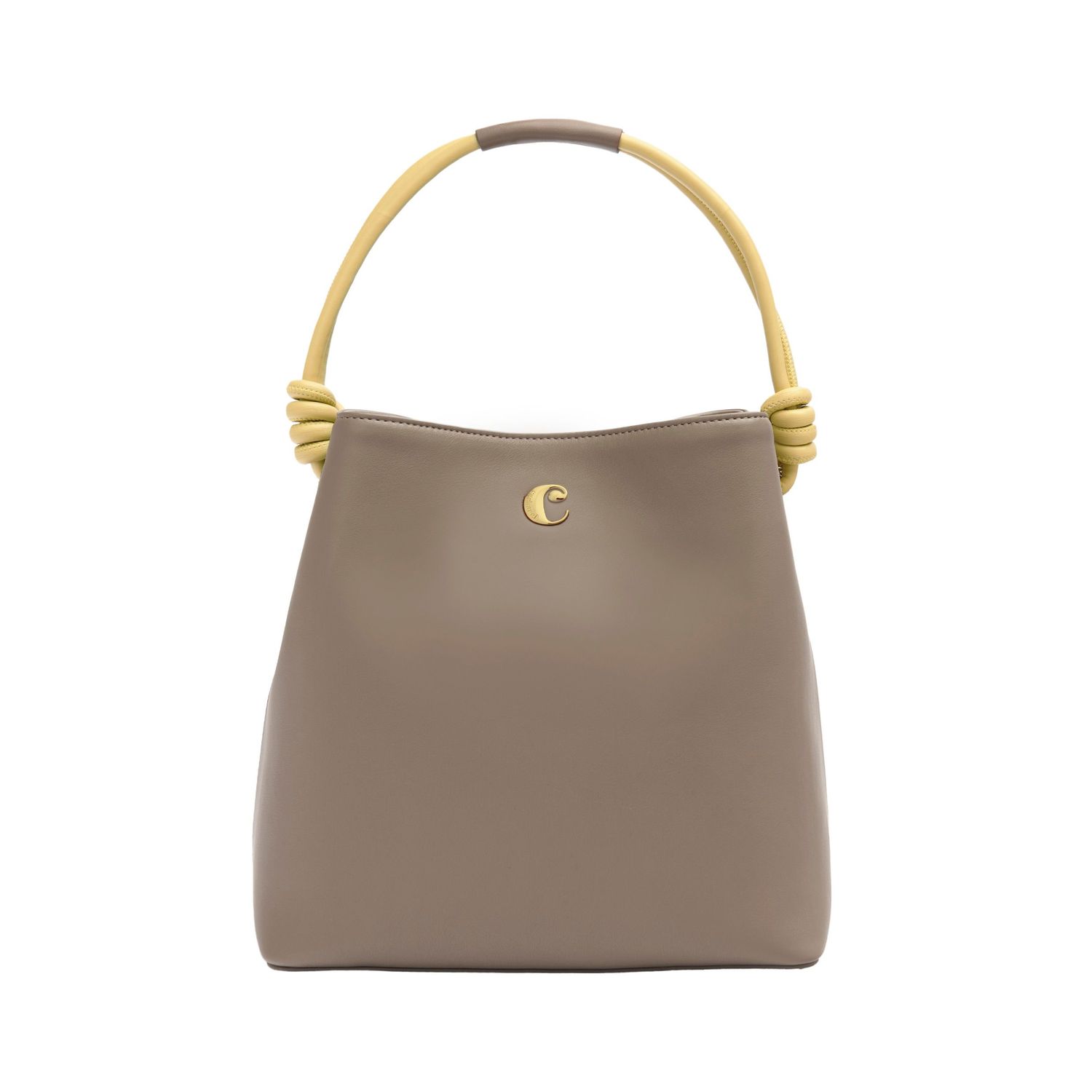 Torebka Apolline w kolorze taupe jest wykonana z miękkiej, matowej, wysokiej jakości skóry wegańskiej (PU) i ma kultowe logo „C” z przodu, z lekkimi pozłacanymi wykończeniami, w tym logo podpisu. Żywy żółty uchwyt w kształcie węzła dodaje wesołego koloru, a złoty podpis TPU Cacharel z tyłu zapewnia subtelny, ale luksusowy akcent. Wersja taupe łączy w sobie zarówno elegancję, jak i praktyczność, dzięki czemu jest wszechstronnym i stylowym dodatkiem na każdą okazję. Linia jest miękka, kolorowa i zabawna, dodając żywej energii do każdego stroju.