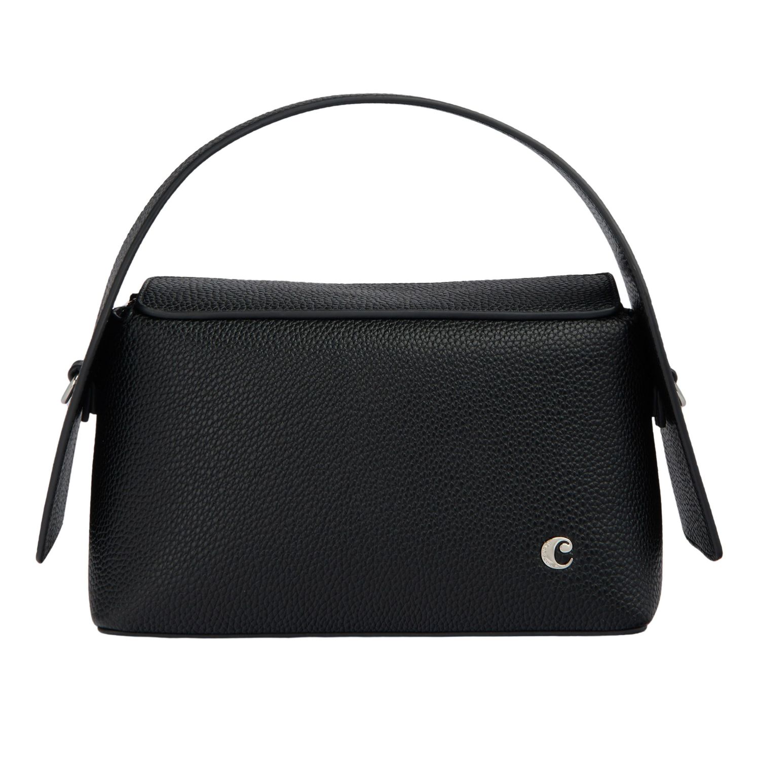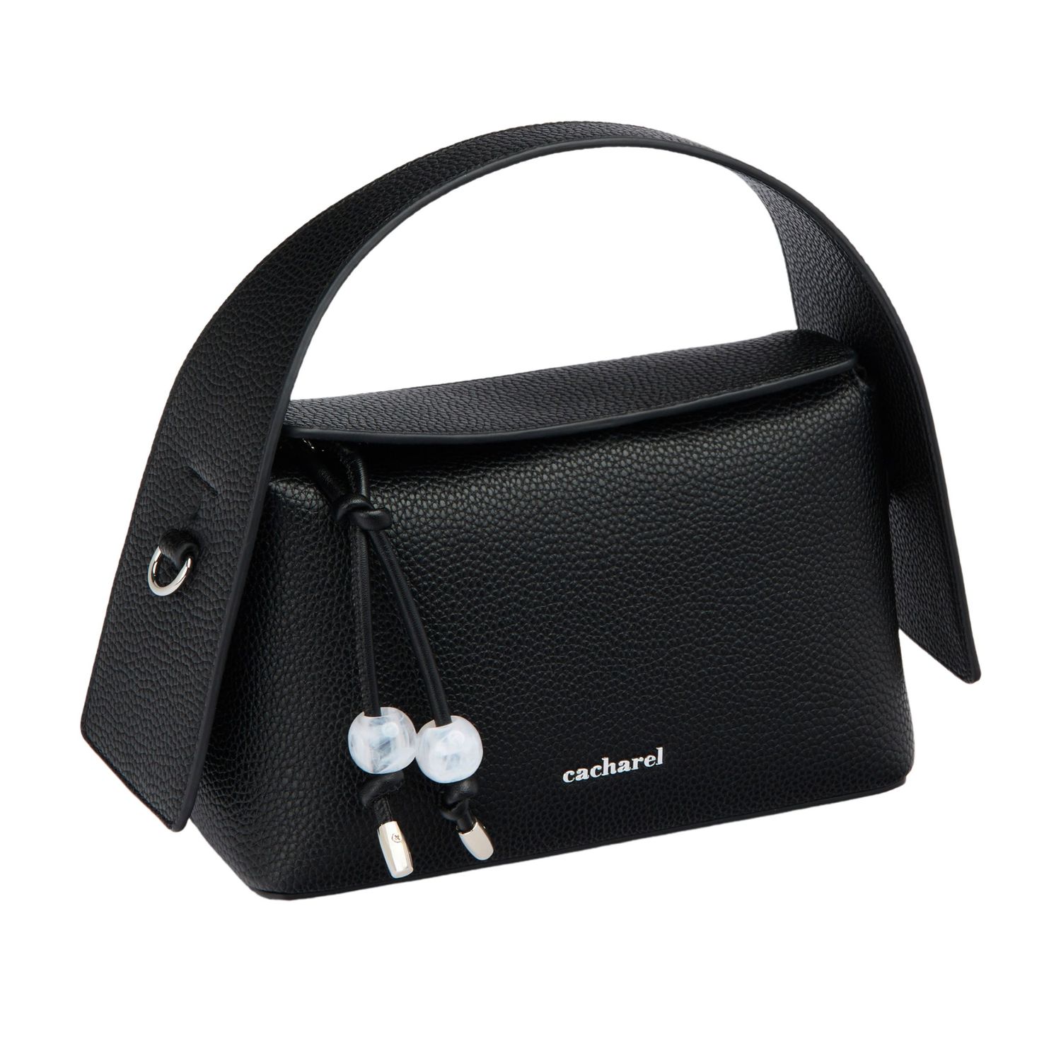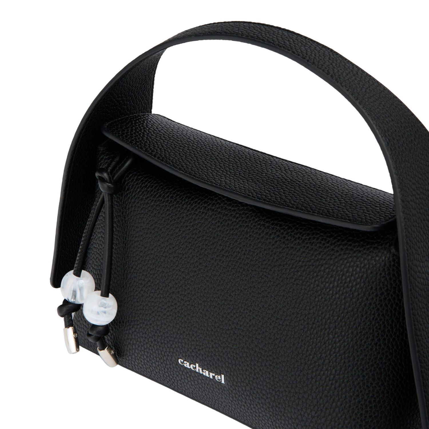 Torebka „Clementine” z czarnej, matowej, ziarnistej skóry wegańskiej (PU) charakteryzuje się nowoczesnym, współczesnym designem z eleganckim, ziarnistym, matowym wykończeniem skóry. Chromowane metalowe akcenty wnoszą dodatkowy powiew nowoczesności. Głęboki, minimalistyczny czarny kolor podkreśla zintegrowaną, nowoczesną sylwetkę, a nieoczekiwany design uchwytu zapewnia charakterystyczny akcent. Sygnowana kultowym logo „Cacharel” z przodu i tabliczką „C” z tyłu, torba łączy funkcjonalność z zdecydowanym stylem. Nowoczesny, ostry design w połączeniu z subtelnymi czarnymi teksturami sprawiają, że jest to wyróżniający się dodatek.