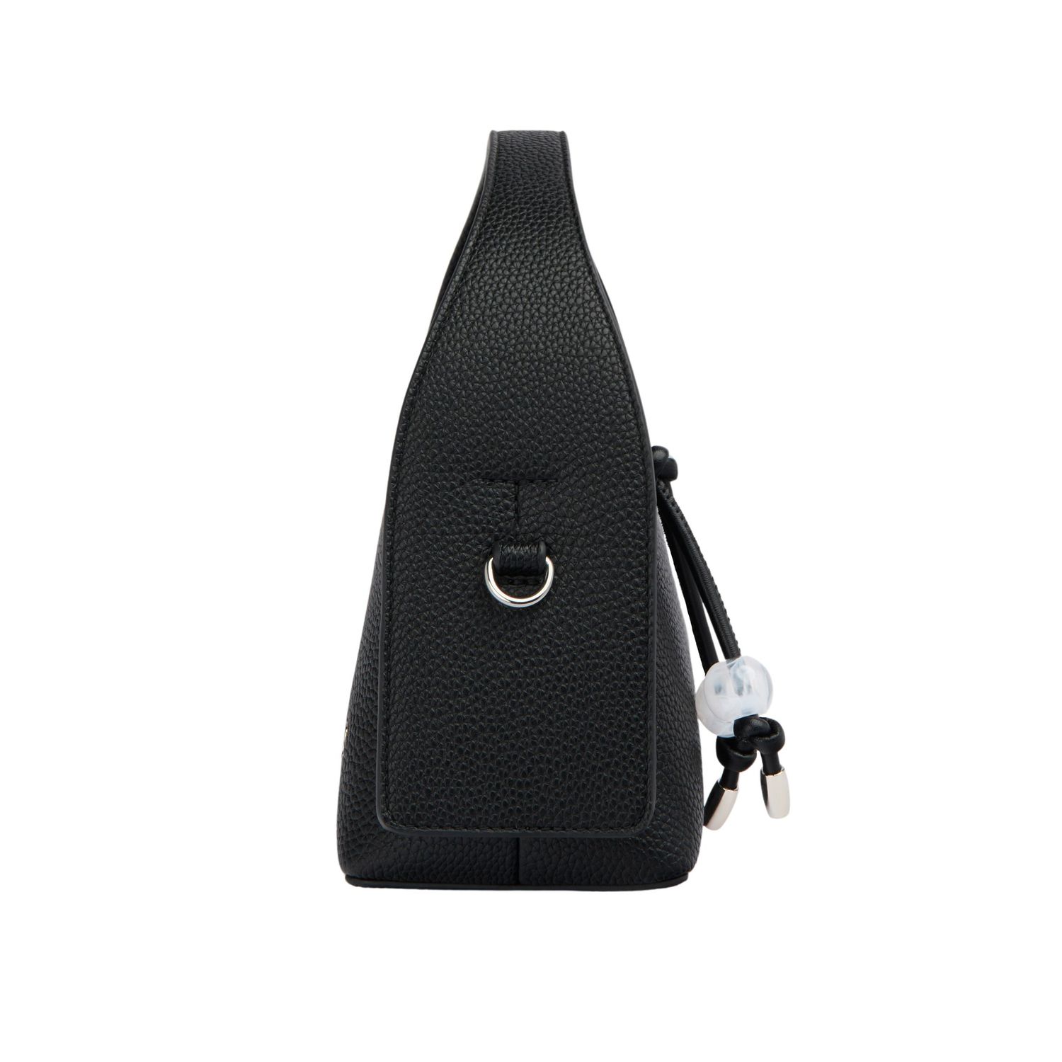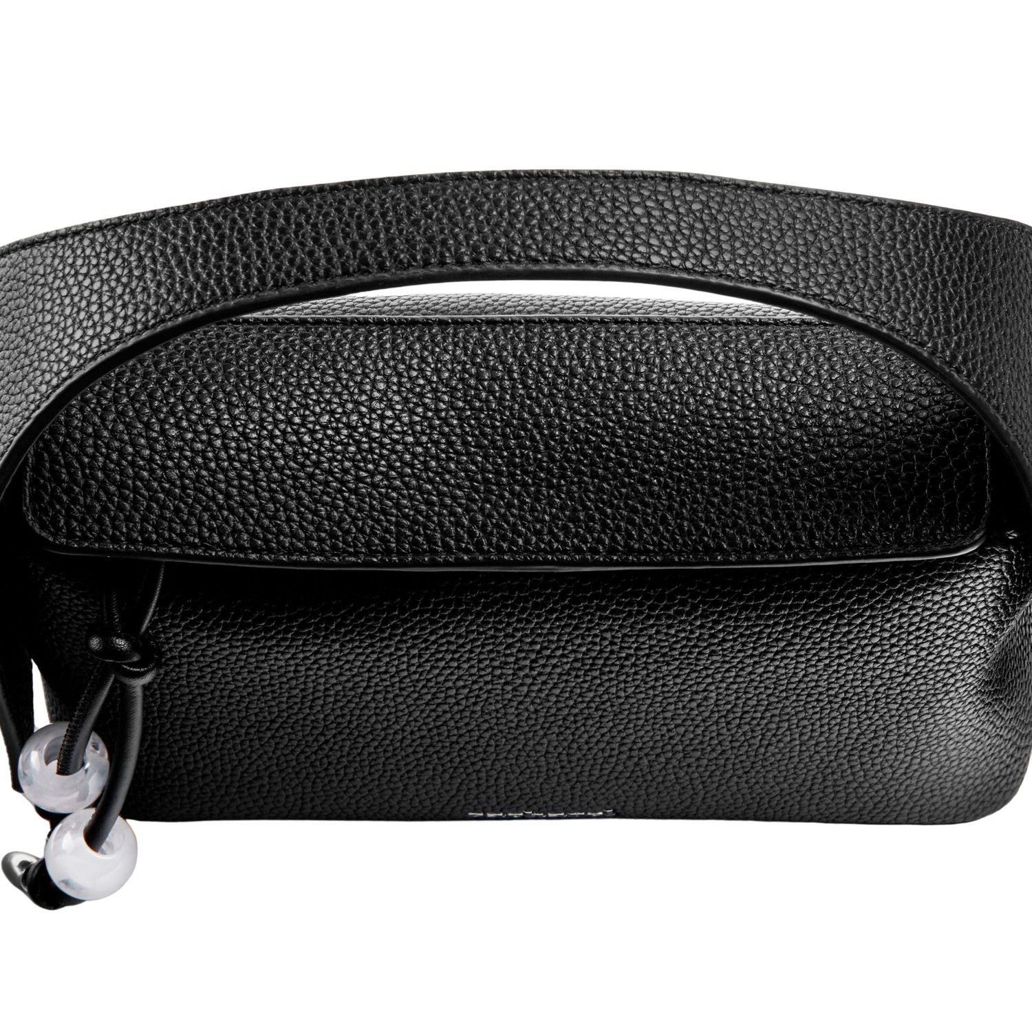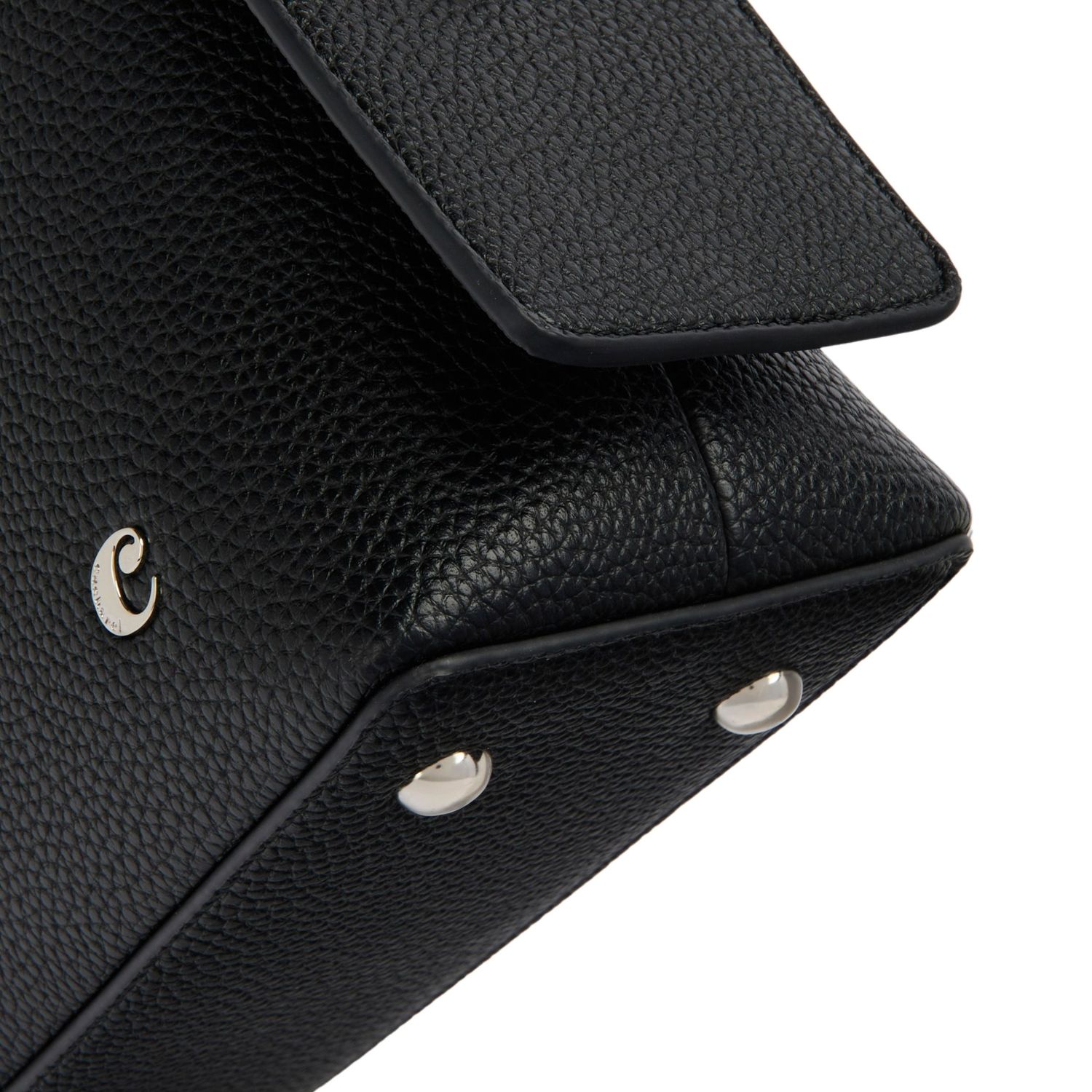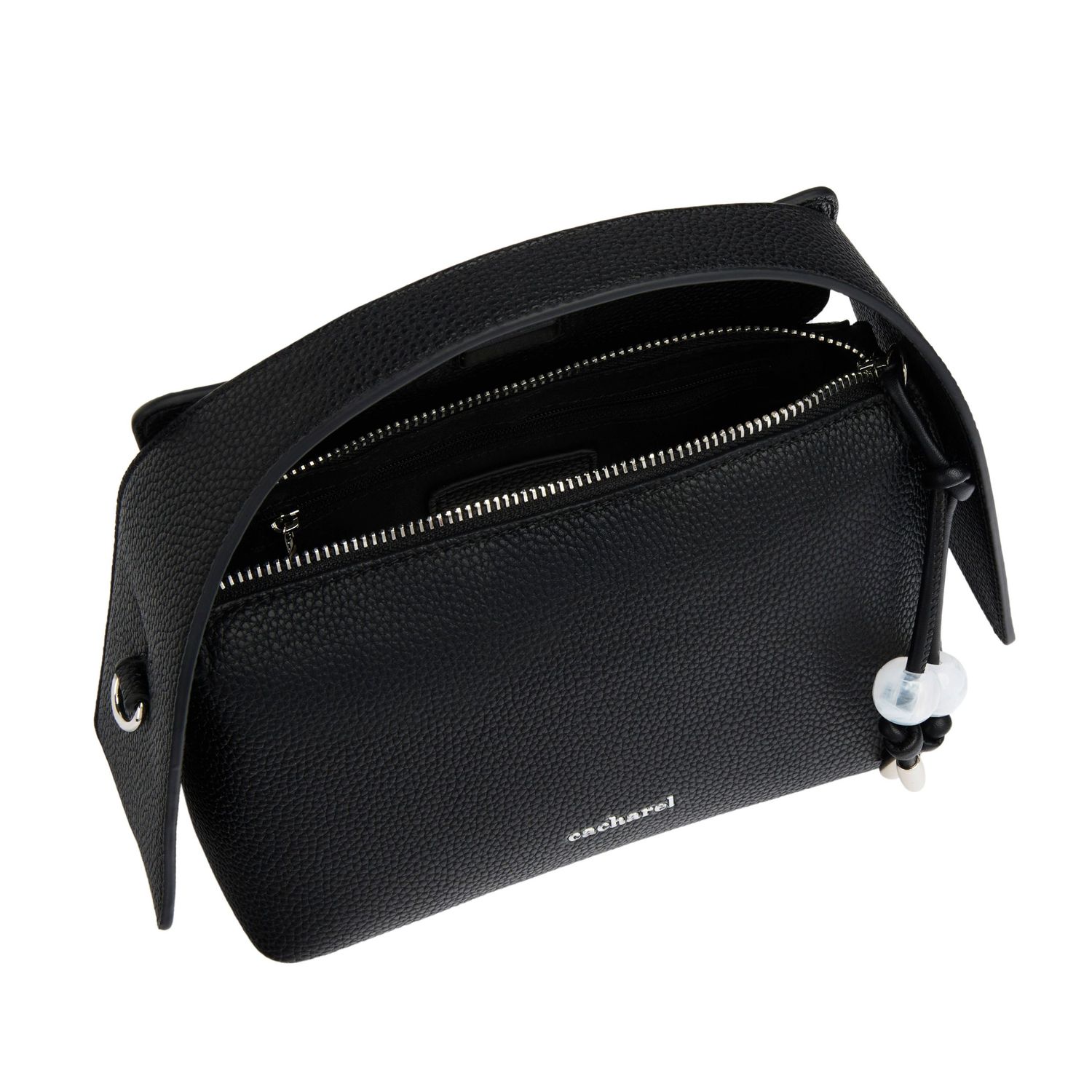 Torebka „Clementine” z czarnej, matowej, ziarnistej skóry wegańskiej (PU) charakteryzuje się nowoczesnym, współczesnym designem z eleganckim, ziarnistym, matowym wykończeniem skóry. Chromowane metalowe akcenty wnoszą dodatkowy powiew nowoczesności. Głęboki, minimalistyczny czarny kolor podkreśla zintegrowaną, nowoczesną sylwetkę, a nieoczekiwany design uchwytu zapewnia charakterystyczny akcent. Sygnowana kultowym logo „Cacharel” z przodu i tabliczką „C” z tyłu, torba łączy funkcjonalność z zdecydowanym stylem. Nowoczesny, ostry design w połączeniu z subtelnymi czarnymi teksturami sprawiają, że jest to wyróżniający się dodatek.
