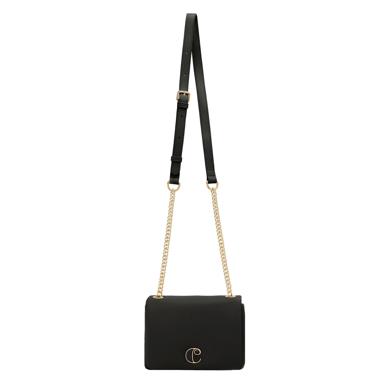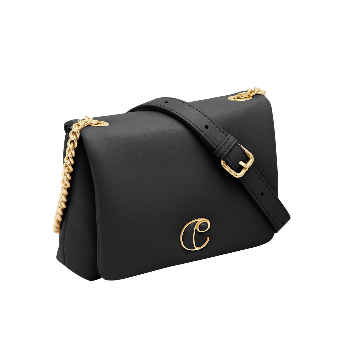 Mała torebka „Vivienne” w kolorze czarnym to ponadczasowy wyraz szykownego wyrafinowania. Wykonana z miękkiej, matowej skóry wegańskiej (PU) z efektem wyściełania, jej elegancki wygląd podkreślają błyszczące złote wykończenia. Złota tabliczka z logo „C” z czarnym wykończeniem ABS dodaje uderzającego i płynnego akcentu wyrafinowania. Ta torba crossbody jest wyposażona w pasek z PU i metalowy łańcuszek o regulowanej długości dla dodatkowej wygody. Kompaktowa, ale praktyczna, ta torba płynnie przechodzi od dnia do wieczora, oferując wszechstronność i styl.