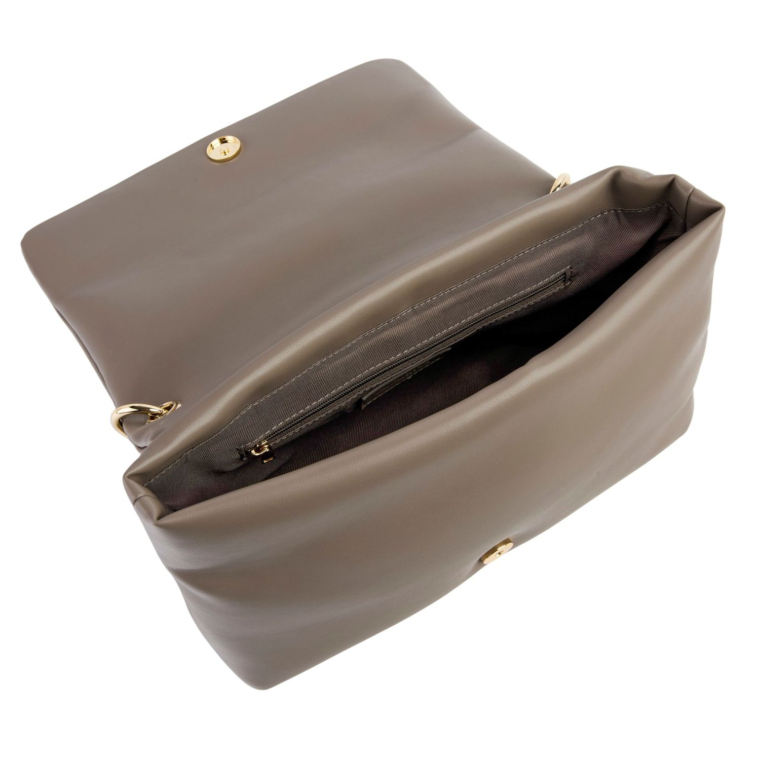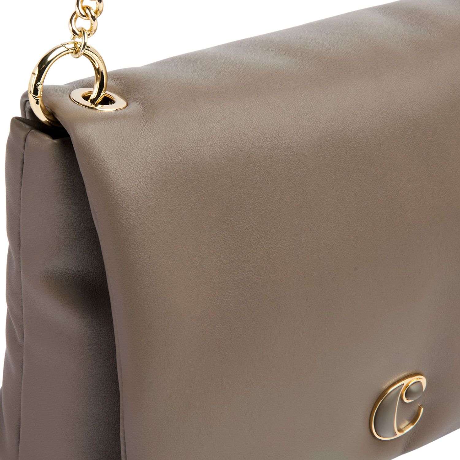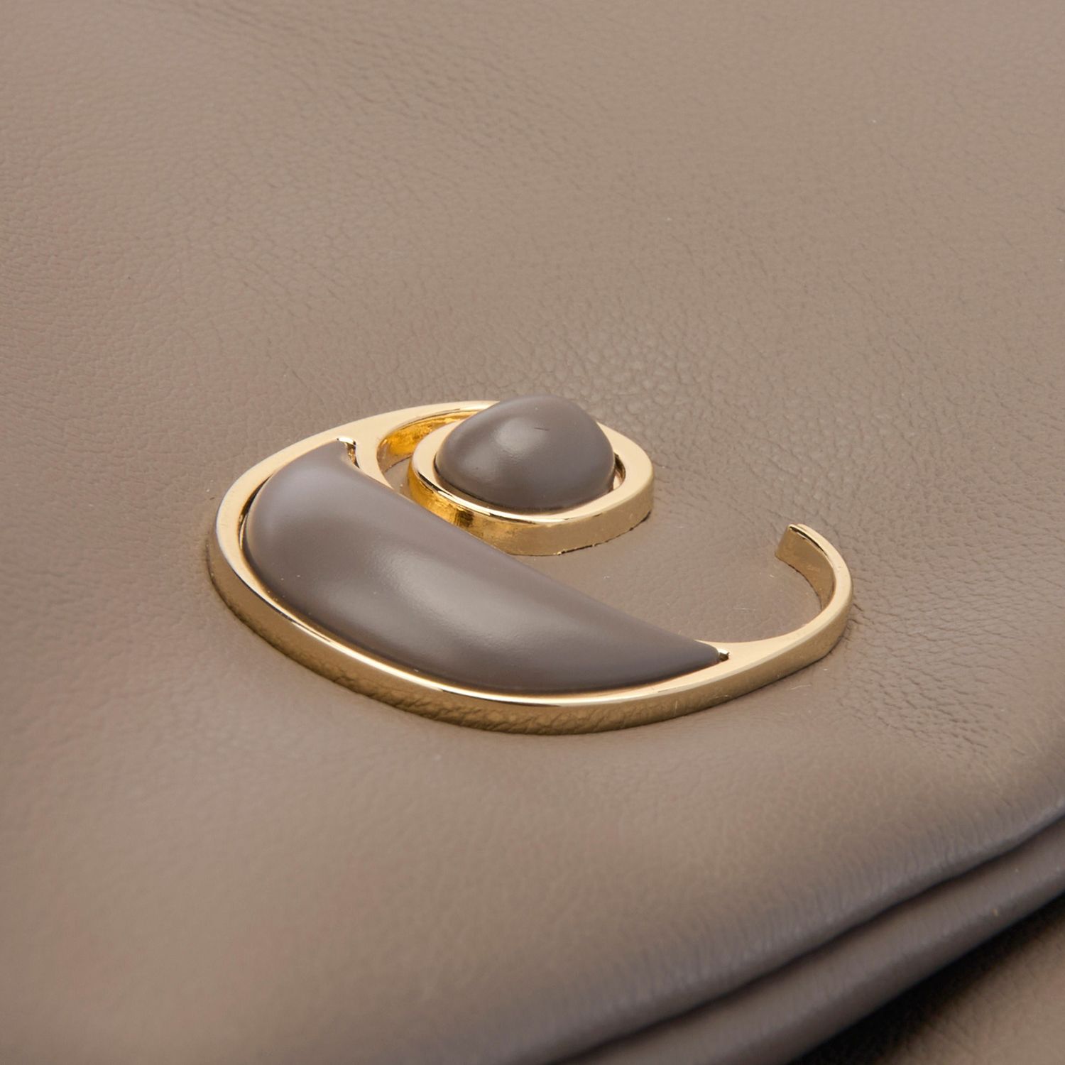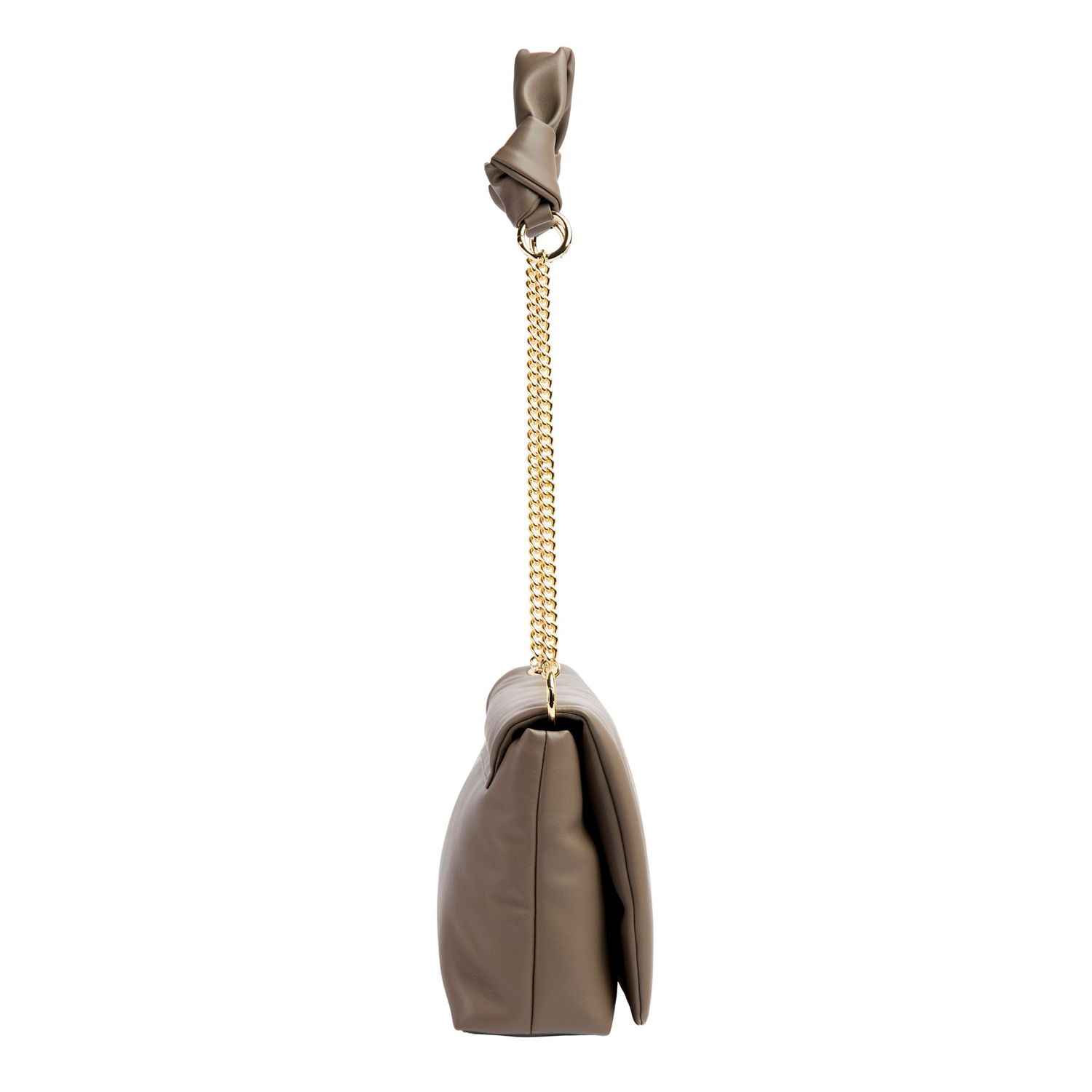 Torebka „Vivienne” w kolorze taupe to idealne połączenie miękkości i uroku, wykonane z wysokiej jakości, miękkiej, matowej skóry wegańskiej (PU) z efektem wyściełania, który podkreśla jej wyrafinowaną sylwetkę. Złote akcenty wnoszą ciepło i luksus do projektu, a złota tabliczka z logo „C” z wykończeniem ABS w kolorze taupe płynnie dopasowuje się do korpusu torby, zapewniając dopracowany i spójny wygląd. Ta wersja posiada charakterystyczny pasek z elegancką kokardą i łańcuszkiem, oferując zabawny, ale wyrafinowany element. Subtelne logo Cacharel dopełnia jej ponadczasowy urok, a przestronne wnętrze sprawia, że idealnie nadaje się do codziennego użytku, łącząc praktyczność z elegancką estetyką.