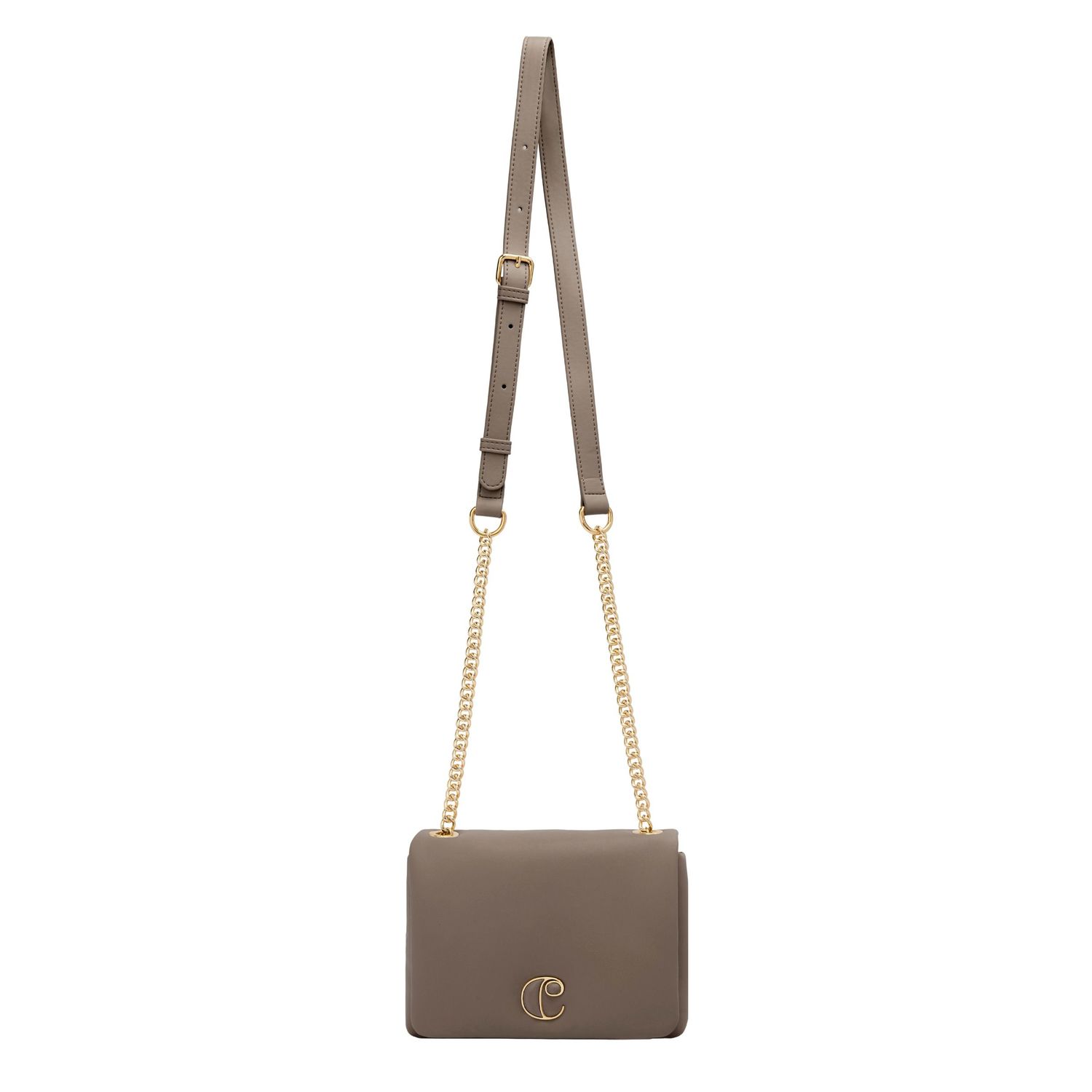 Mała torebka „Vivienne” w kolorze taupe uosabia wyrafinowaną neutralność dzięki miękkiej matowej konstrukcji ze skóry wegańskiej (PU) i wyściełanemu efektowi, który podkreśla jej nowoczesną sylwetkę. Odcień taupe jest pięknie podkreślony złotymi wykończeniami, a złota tabliczka z logo „C” z wykończeniem taupe ABS tworzy harmonijny i elegancki detal. Ta torba crossbody posiada pasek wykonany z PU i metalowego łańcuszka, którego długość można regulować w zależności od preferencji. Jej przemyślany rozmiar zapewnia funkcjonalność bez uszczerbku dla stylu, dzięki czemu jest wszechstronnym dodatkiem do każdej garderoby.