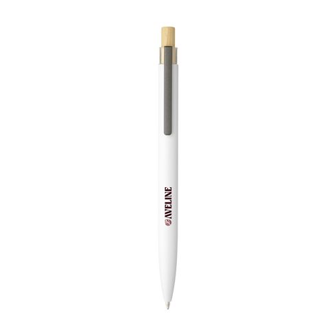 WoW! Modny, piszący na niebiesko długopis z korpusem wykonanym w 100% z aluminium pochodzącego z recyklingu, z matowym wykończeniem. Bambusowy przycisk ma przezroczysty akcent. Uchwyt składa się z jednego elementu i jest standardowo zadrukowany logo „aluminium z recyklingu”. Certyfikat GRS. Dzięki wykorzystaniu aluminium pochodzącego z recyklingu, do produkcji tego produktu zużywa się mniej nowych surowców. Oznacza to mniejsze zużycie energii i wody.