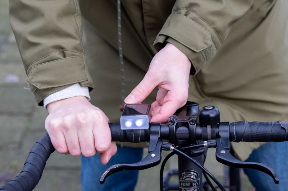 Solar Bikelight można łatwo i szybko przymocować za pomocą dwóch mocnych zamków błyskawicznych. Ten dodatek okazał się wystarczająco mocny, aby odstraszyć złodziei. Złodziej potrzebowałby ostrego noża, aby przeciąć opaski, a następnie musi kupić własne opaski (rozmiar niestandardowy!), aby samodzielnie używać światła rowerowego. Krótko mówiąc, już nigdy nie będziesz musiał zdejmować świateł z roweru ani martwić się, że zapalą się światła w kieszeni i wyczerpią się baterie.