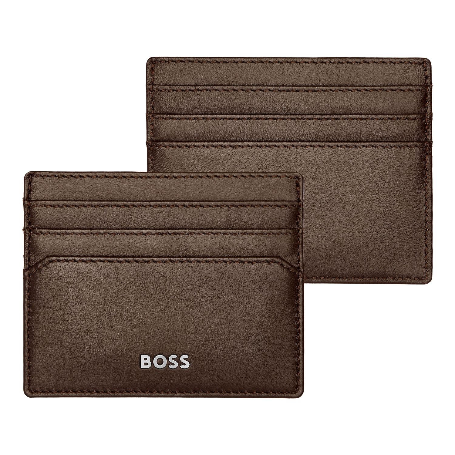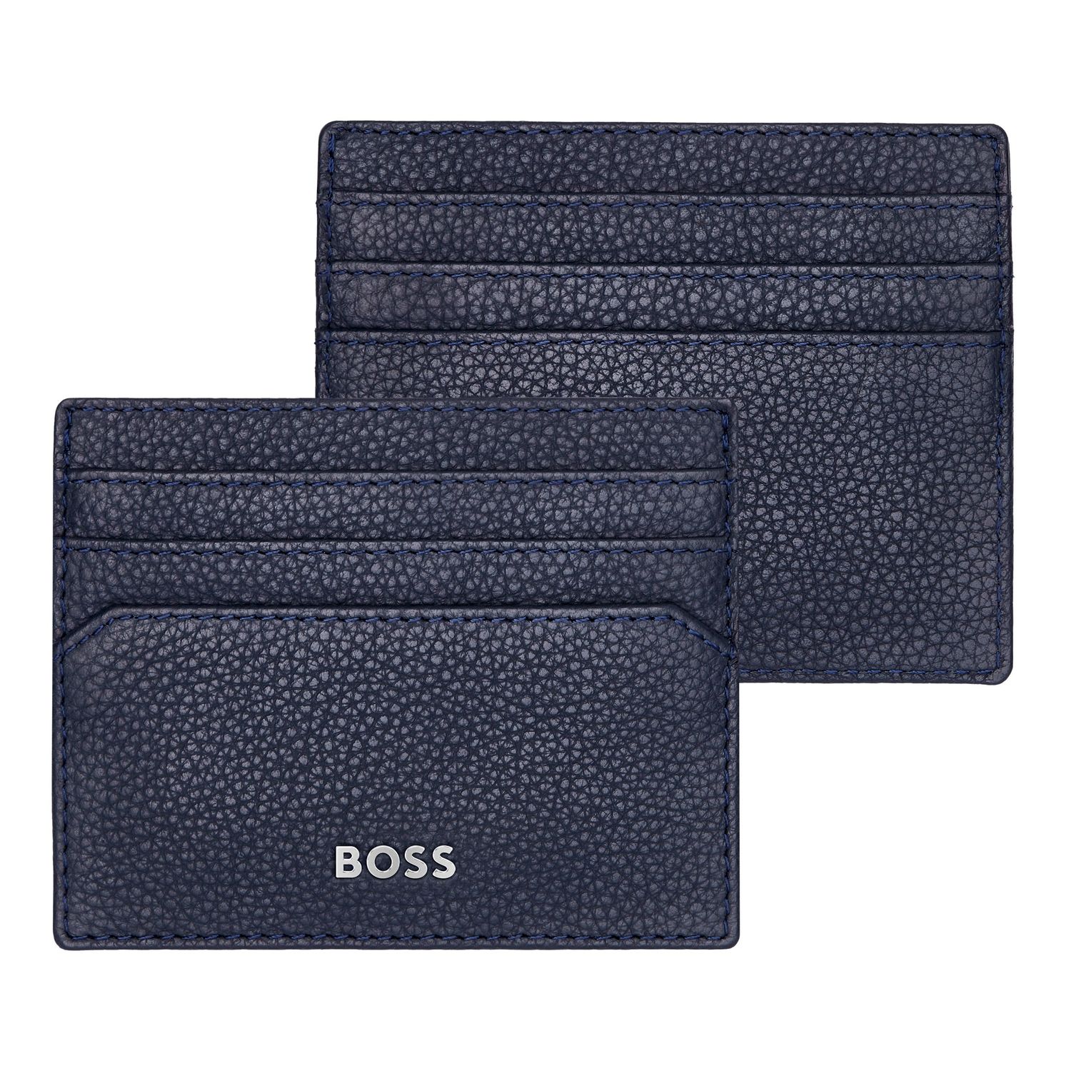 Boss Iconic line is characterized by carefully chosen top-grain textured leathers and on trend aesthetics. All pieces are skilfully assembled and beautifully finished with crisp chrome signature plates and monogram linings. Another distinctive feature of this iconic version is the tricolored textile flag that adorns all items in this series This card holder includes 1 currency compartment & 6 card slots