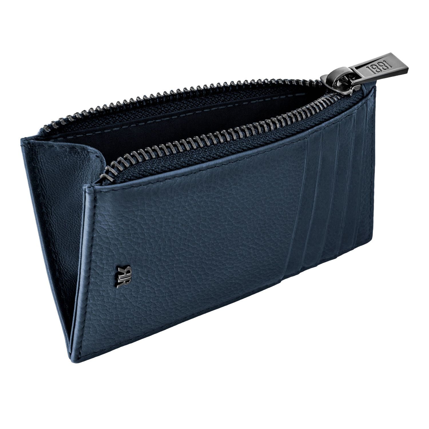 The CERRUTI 1881 Jefferson zipped card holder is compact and highly functional, offering five front card slots and a spacious gusseted zipped compartment that keeps essentials neatly organised within a slim silhouette. Made from carefully selected grained, best-quality leather, it delivers both durability and understated refinement. Elevated by its luxurious 1881-engraved zipper puller, the metal detailing adds depth and sophistication, while the miniature double R logo in gunmetal complements the elegant navy version with a subtle, contemporary character.