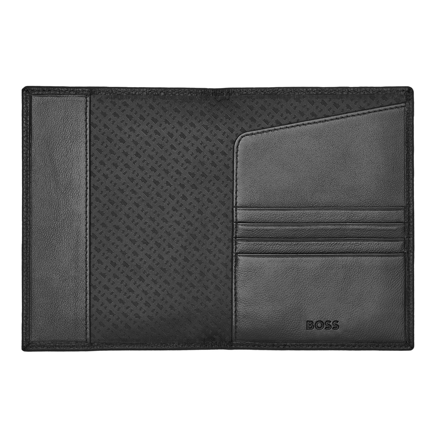 Boss Classic Grained line is characterized by carefully chosen top-grain leathers and minimalist designs. All pieces are skilfully assembled and beautifully finished with crisp chrome signature plates and monogram linings. The designs are available in black, navy and camel. This passeport holder features : 1 currency compartment 4 card slots 1 passport book pocket