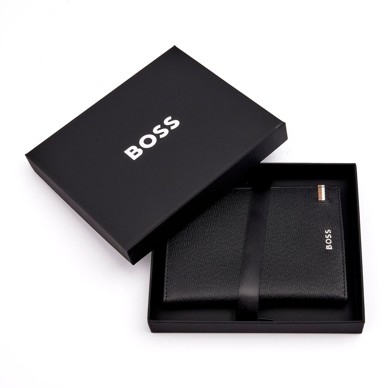 Boss Iconic line is characterized by carefully chosen textured top-grain leathers and on trend aesthetic. All pieces are skilfully assembled and beautifully finished with crisp chrome signature plates and monogram linings. Another distinctive feature of this iconic version is the tricolored textile flag that adorns all items in this series This passeport holder features : 1 currency compartment 3 card slots 1 passport book pocket