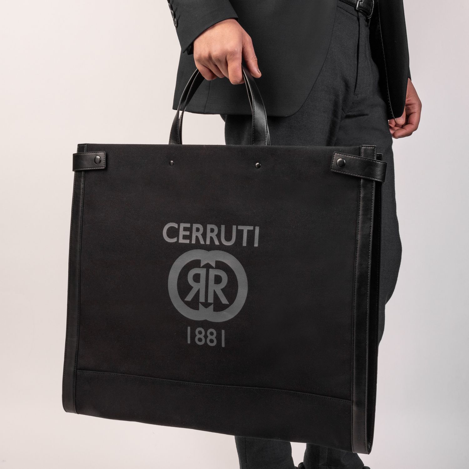Linia „Hampstead” wykonana jest z płótna i skóry wegańskiej (PU), co stanowi idealne połączenie dla tej torby na ubrania, ponieważ jest ona dość lekka. Ta czarna wersja jest minimalna i łatwa do noszenia, a na jej powierzchni znajduje się nadruk nowego logo CERRUTI 1881. Ten przedmiot będzie Ci towarzyszył w każdej podróży i sprawi, że Twoje garnitury będą zawsze wolne od zmechaceń!