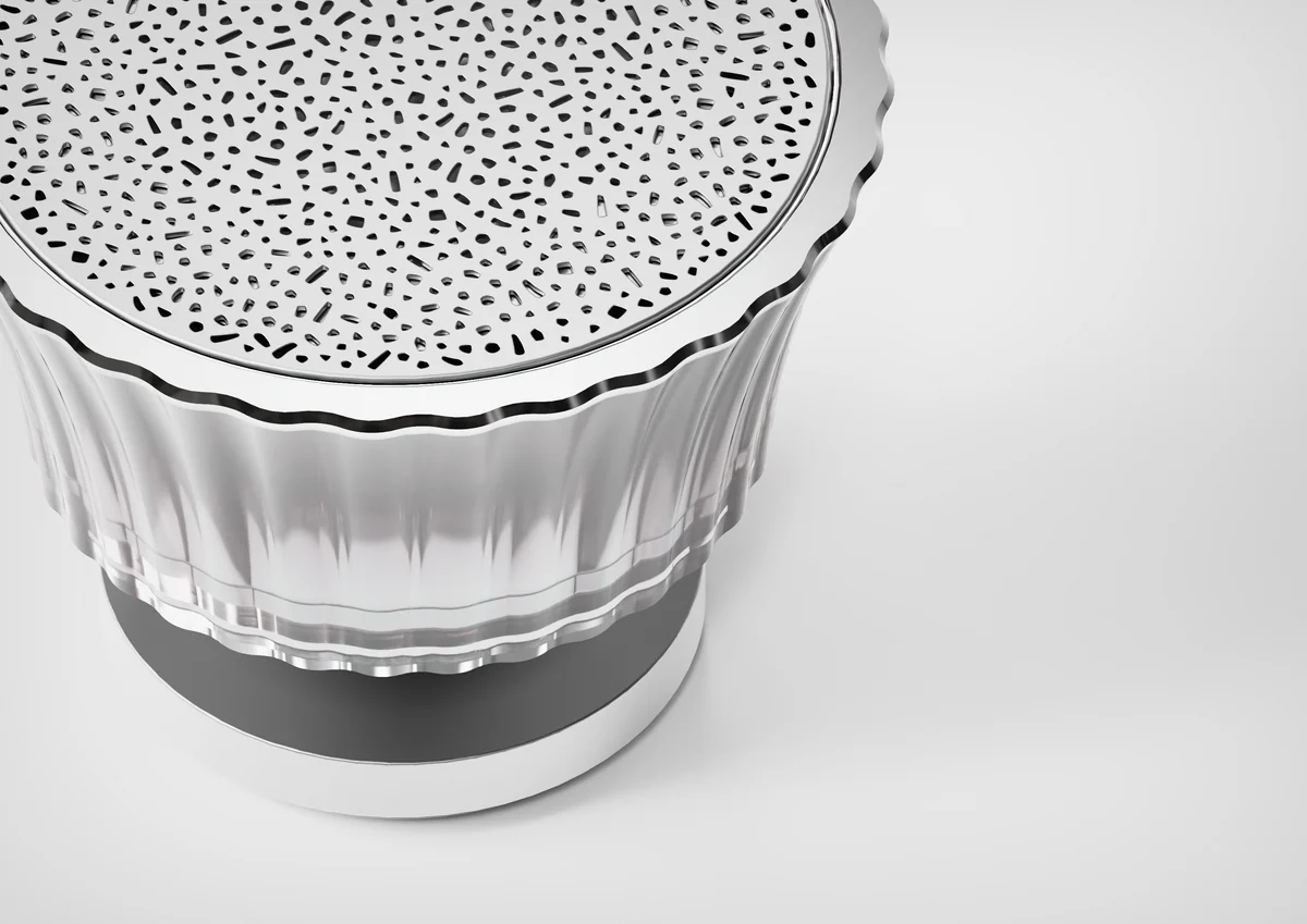 Przedstawiamy nasz nowy głośnik: uosobienie elegancji i stylu. Dzięki falistemu wzornictwu i wykończeniom premium idealnie wpasowuje się w każde nowoczesne wnętrze, zapewniając jednocześnie nieskazitelną jakość dźwięku. Ten głośnik to idealne połączenie luksusu i funkcjonalności.