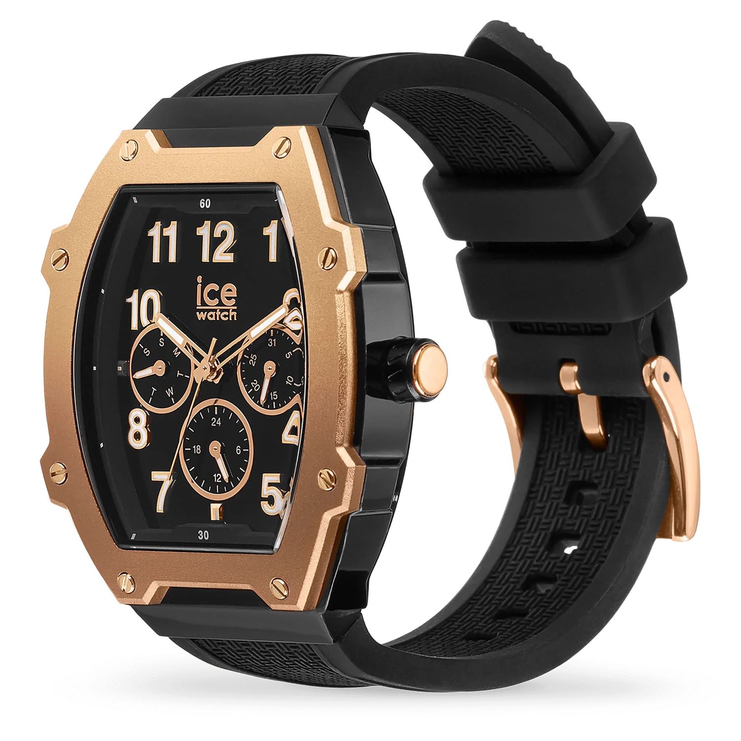 Introducing the ICE boliday Black Rose Gold watch by Ice-Watch, a stunning timepiece that effortlessly combines style and functionality. With its sleek black dial and luxurious rose gold accents, this unisex watch is perfect for any occasion. Made from durable plastic and silicone, it features a lightweight design for ultimate comfort. Water-resistant up to 3 ATM, it’s suitable for everyday wear. Whether you’re dressing up or going casual, the ICE boliday adds a touch of elegance to your wrist. Don’t miss out on this versatile accessory—your perfect companion awaits!
