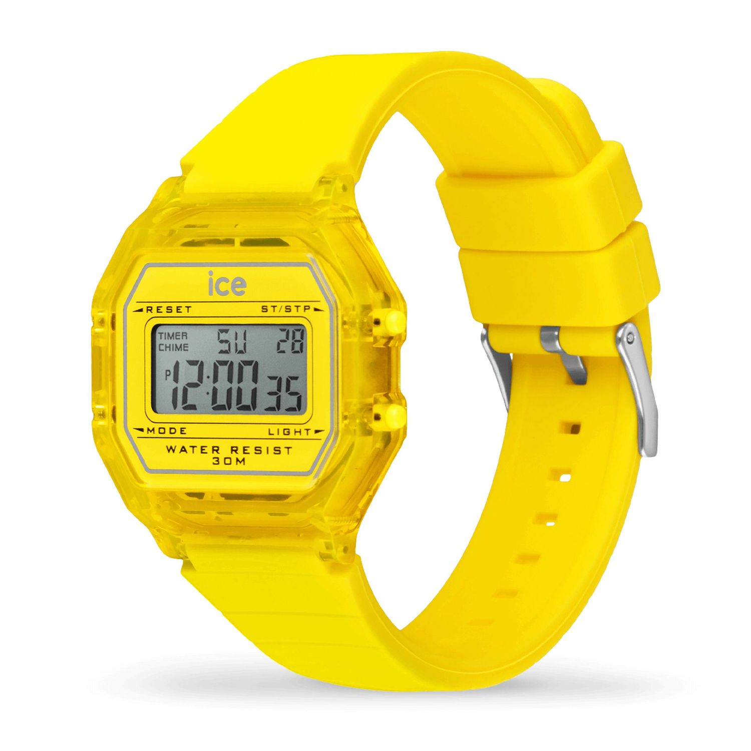 Introducing the ICE digit retro Electric Yellow-Clear-Small watch from Ice-Watch—a vibrant accessory designed for the modern woman. This playful timepiece combines a bright yellow dial and a clear plastic case, ensuring you stand out wherever you go. Lightweight at just 28 grams and water-resistant up to 3 ATM, it’s perfect for daily wear or special occasions. The soft silicone strap provides ultimate comfort, making it the ideal blend of style and functionality. Elevate your accessory game with this eye-catching watch that complements any outfit!