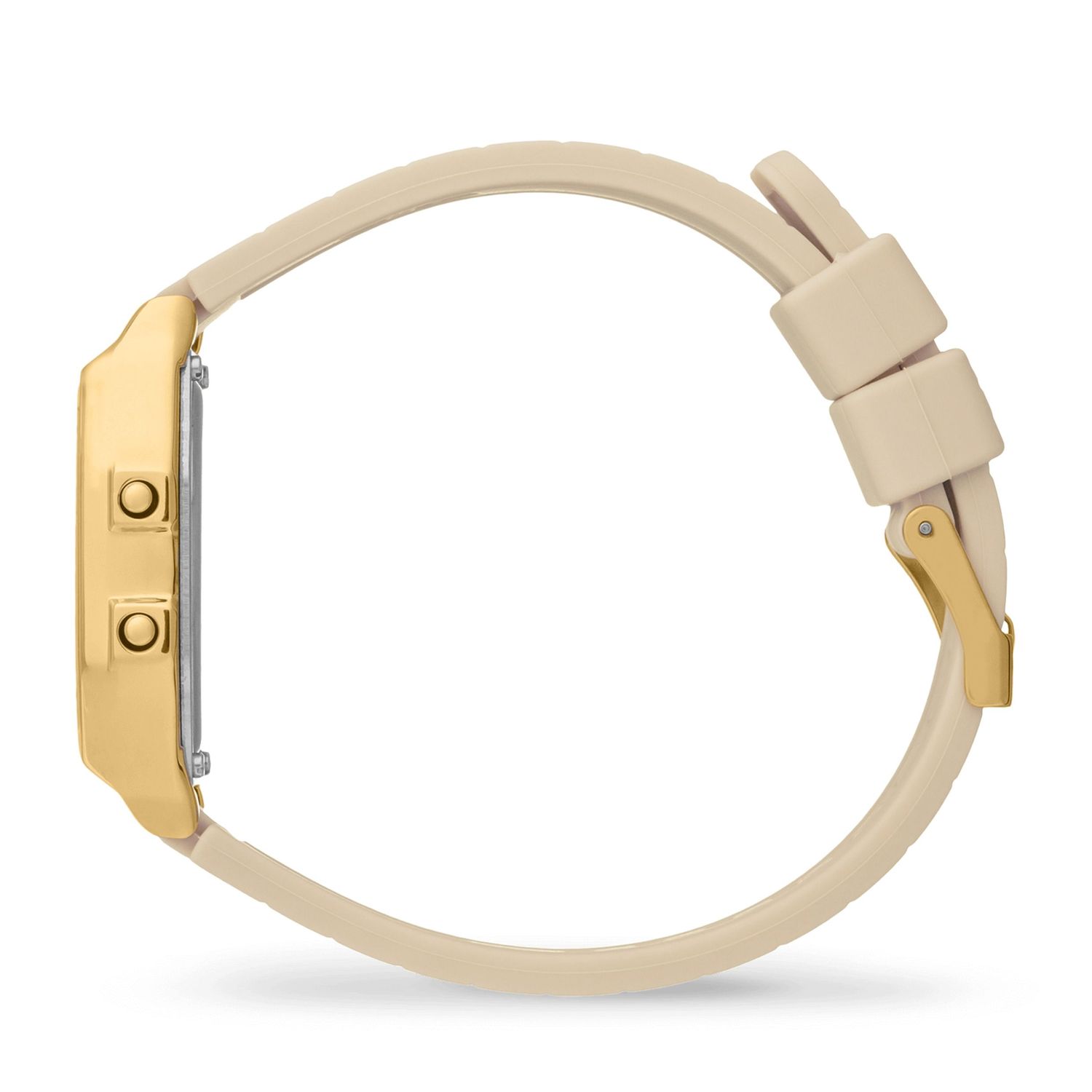 Introducing the ICE Digit Retro Metal Gold Mirror watch from Ice-Watch—a stunning accessory that perfectly blends elegance and modernity. Featuring a sleek beige dial set within a stainless steel case, this chic timepiece is designed for the stylish woman on the go. The unique almond skin color and refined silicone strap add a touch of sophistication, while its water resistance up to 3 ATM ensures durability for your everyday adventures. Weighing only 28g, it’s the perfect blend of comfort and style. Elevate your look with this exquisite watch today!