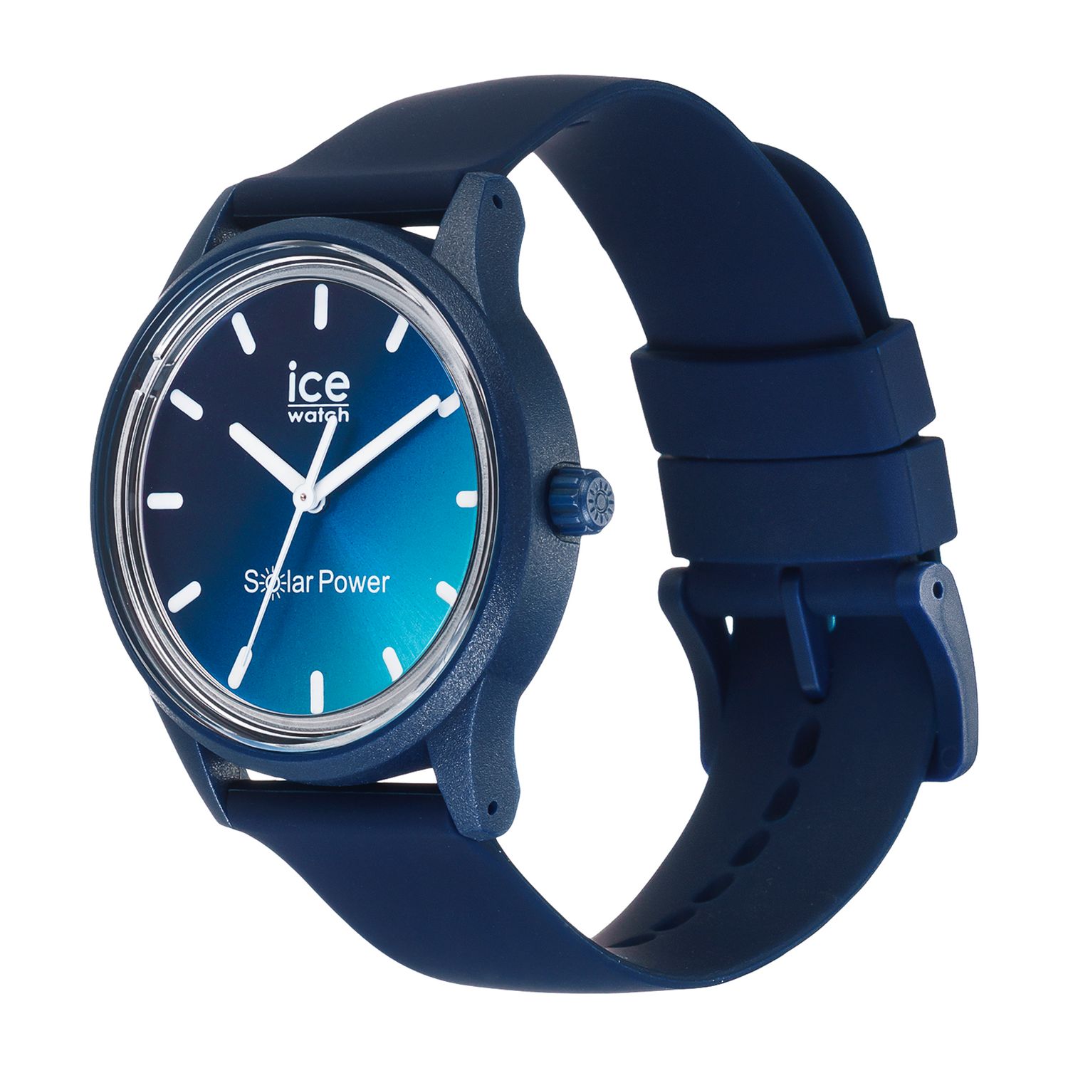 Go green and do your bit for the planet with the new ICE solar power Blue sunset watch. The solar-powered timepiece is ultra slim and feather light. With its strap made from super soft silicone, this model is the ultimate minimalist statement. Simply expose it to natural or artificial light to charge, then sit back and enjoy as it lasts and lasts! It comes in a reusable felt pouch made from recycled plastic bottles.