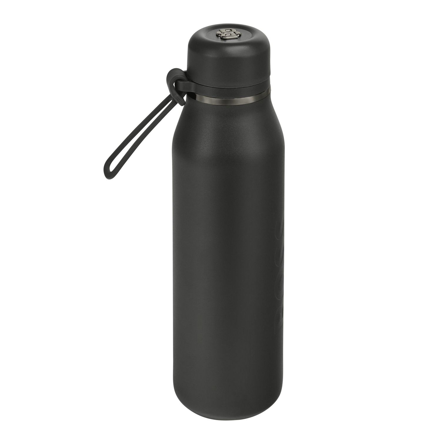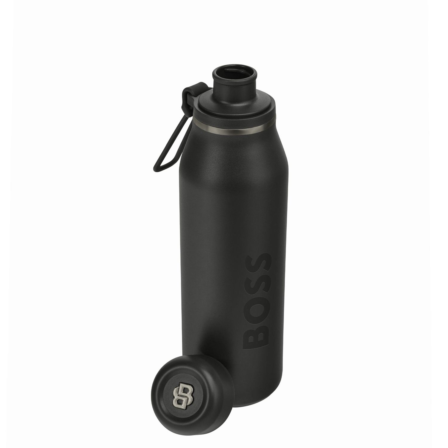The BOSS bottle features a smooth, matte surface embossed with an oversized BOSS logo, delivering a minimal and unisex yet luxurious expression through a clean, modern silhouette in black with sleek gunmetal trims. The design is completed by a plated Double B logo on the lid in matching metal tones, while carefully coordinated details and a tone-on-tone silicone strap ensure a cohesive and streamlined look. With a 600 ml capacity, the bottle is designed for everyday use and easy portability, carrying both hot and cold drinks throughout the day. The bottle is double-walled, with SS304 inner and SS201 outer material.