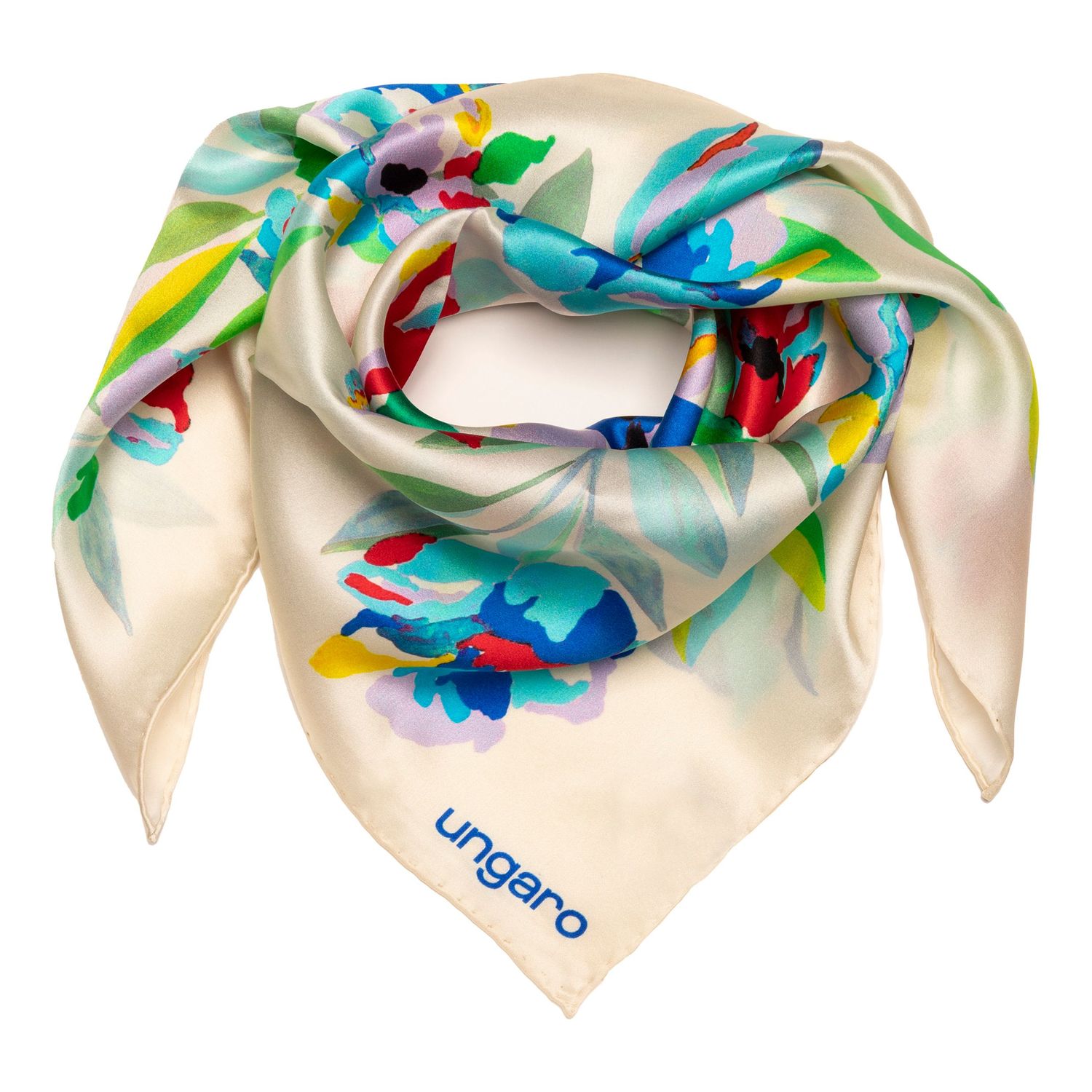 Jedwabne kwadratowe szale „Paola” są wykonane z bogatego i luksusowego jedwabiu. Odważny nadruk nawiązuje do trendu flower power i wniesie odrobinę koloru do każdego stroju.