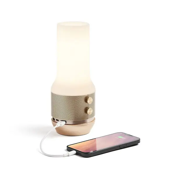 Terrace+ to przenośna lampa 3 w 1, która łączy w sobie ściemnianą wielokolorową diodę LED, głośnik Bluetooth® i wbudowaną baterię 4000 mAh. Dzięki wzornictwu nowoczesnemu i retro Terrace+ został zaprojektowany do użytku wewnątrz i na zewnątrz.
