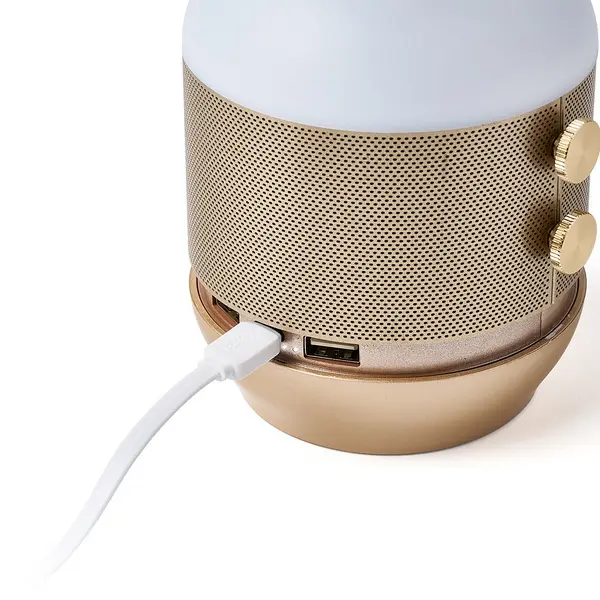 Połącz Terrace+ ze smartfonem lub tabletem przez Bluetooth®, aby cieszyć się dźwiękiem 360°. Jego 2 przyciski sterujące pozwolą Ci dostosować głośność, wybrać jeden z 9 kolorów diody LED i stworzyć niepowtarzalną atmosferę dzięki różnym dostępnym efektom świetlnym. Na obrotowej podstawie znajdują się 2 porty USB-A i port USB-C, które umożliwiają ładowanie kilku urządzeń mobilnych i ładowanie lampy.