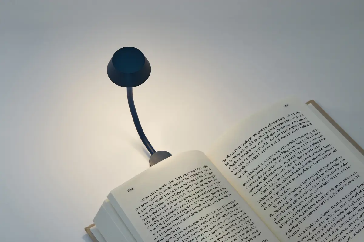 Elastyczna lampa do czytania z klipsem – Regulowany kąt – Zimne lub ciepłe białe światło + 7 kolorów.