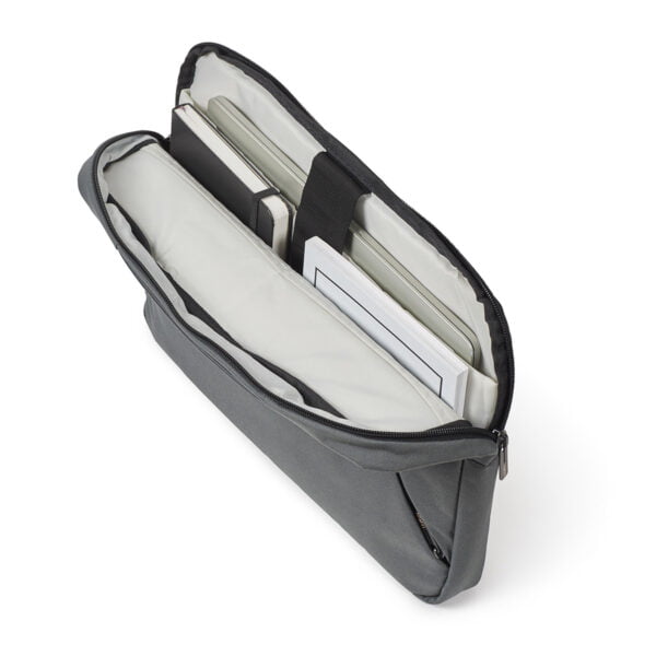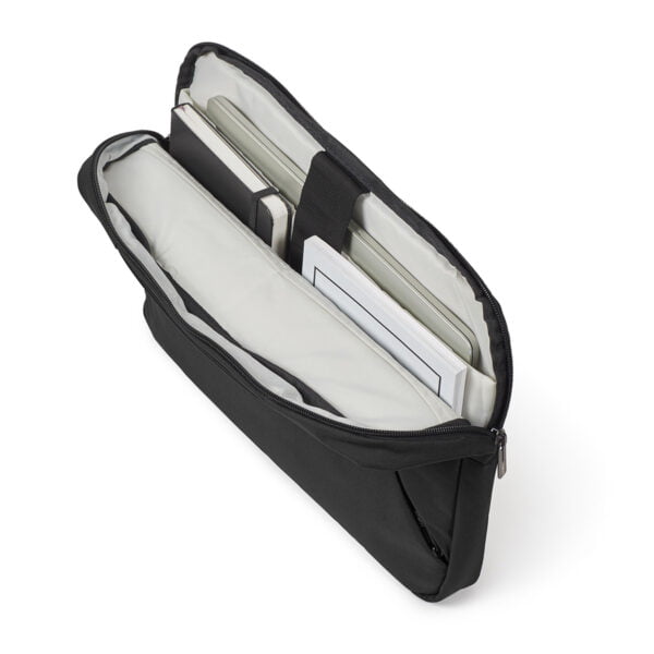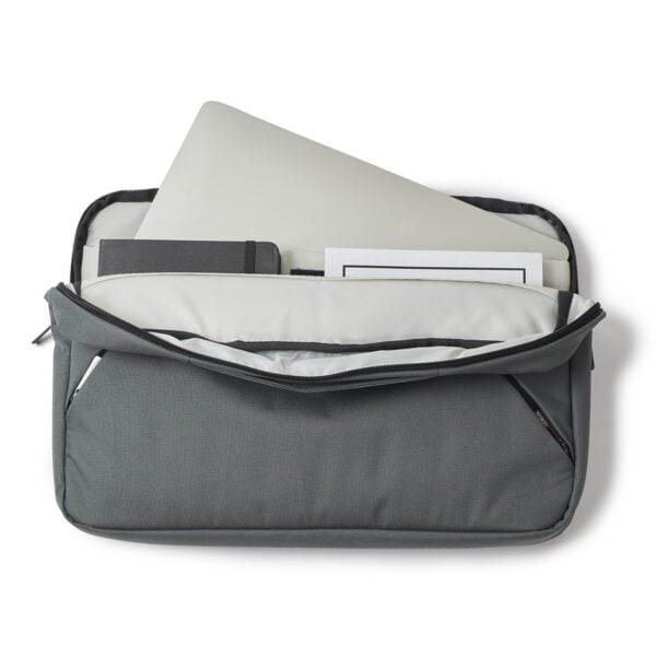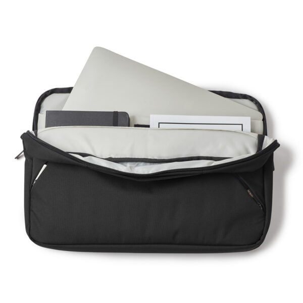 Praktyczna, kompaktowa torba na laptopa. Smukła wersja naszej torby na laptopa jest czysto biznesowa i zapewnia całą niezbędną przestrzeń, której potrzebujesz, aby zabrać ze sobą pracę. Wykonane z poliestrowej tkaniny oxford, stworzonej specjalnie z myślą o długotrwałym użytkowaniu. Zawiera dwie przednie kieszenie zapinane na zamek, a także komorę główną z miejscem na laptopa 13 ”lub 14” oraz kieszenie wewnętrzne do przechowywania niezbędnych rzeczy.