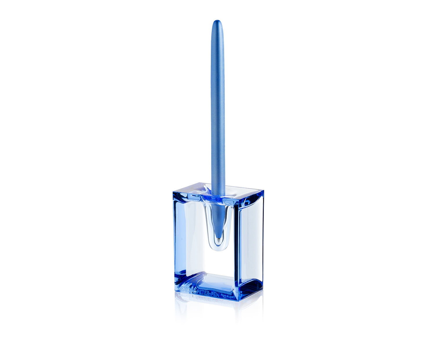 Wkładany w przezroczystą plastikową podstawę, ten aluminiowy długopis zaprojektowany przez Eugeni Quitlet, w nowoczesny i zabawny sposób przypomina tradycyjne pióro wieczne.