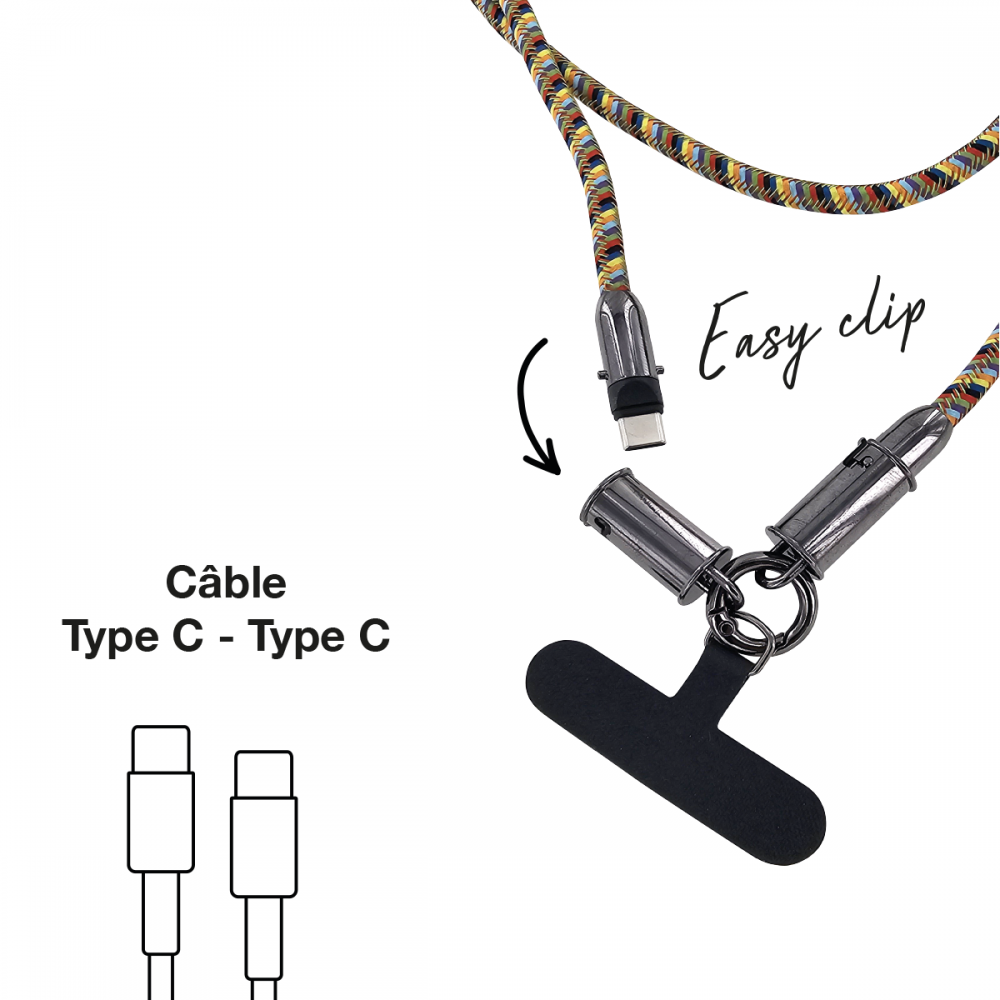 Nasz kabel ładujący łączy w sobie praktyczność i design z funkcją paska na szyję, dzięki czemu możesz mieć telefon zawsze w zasięgu ręki.