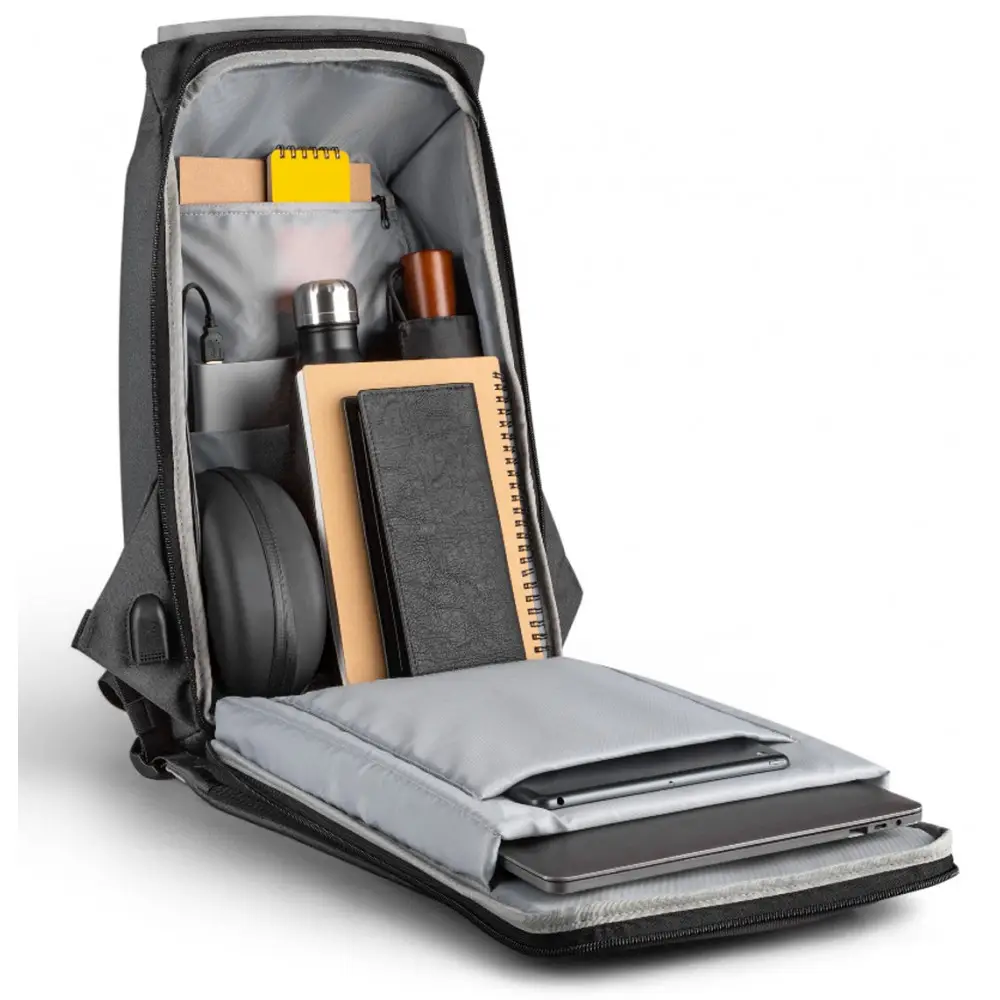 Ukryty zamek błyskawiczny w plecaku o trójwymiarowym kształcie.