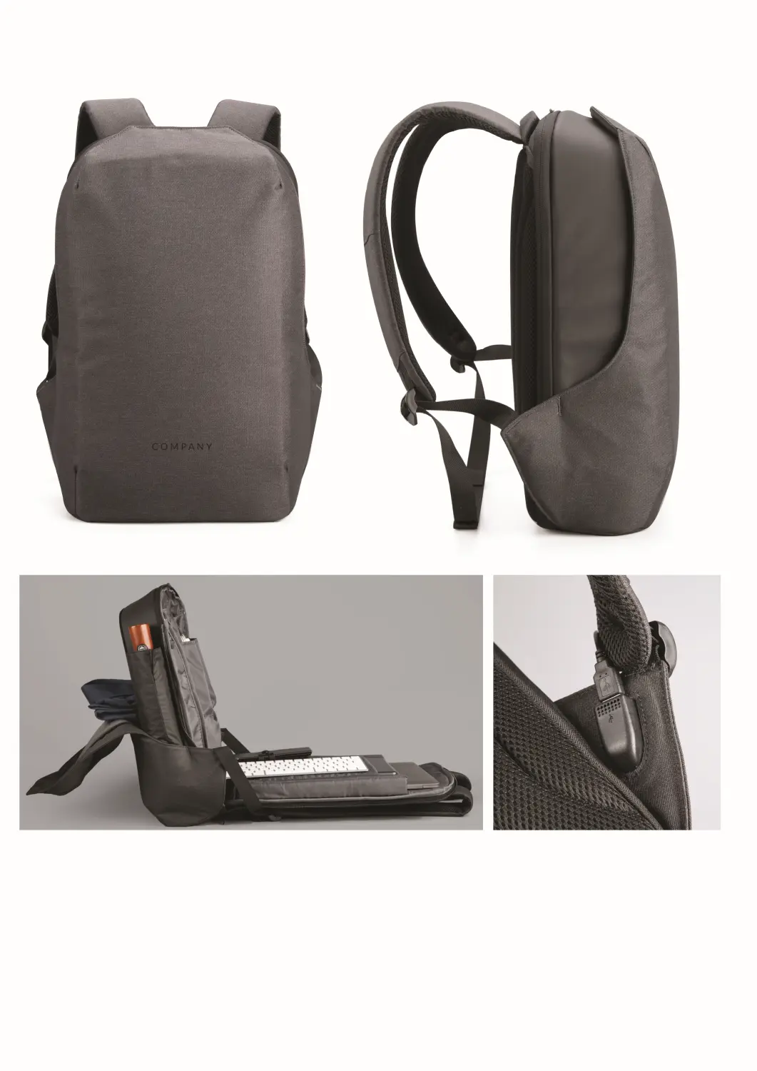Plecak antykradzieżowy z wieloma praktycznymi przegrodami.