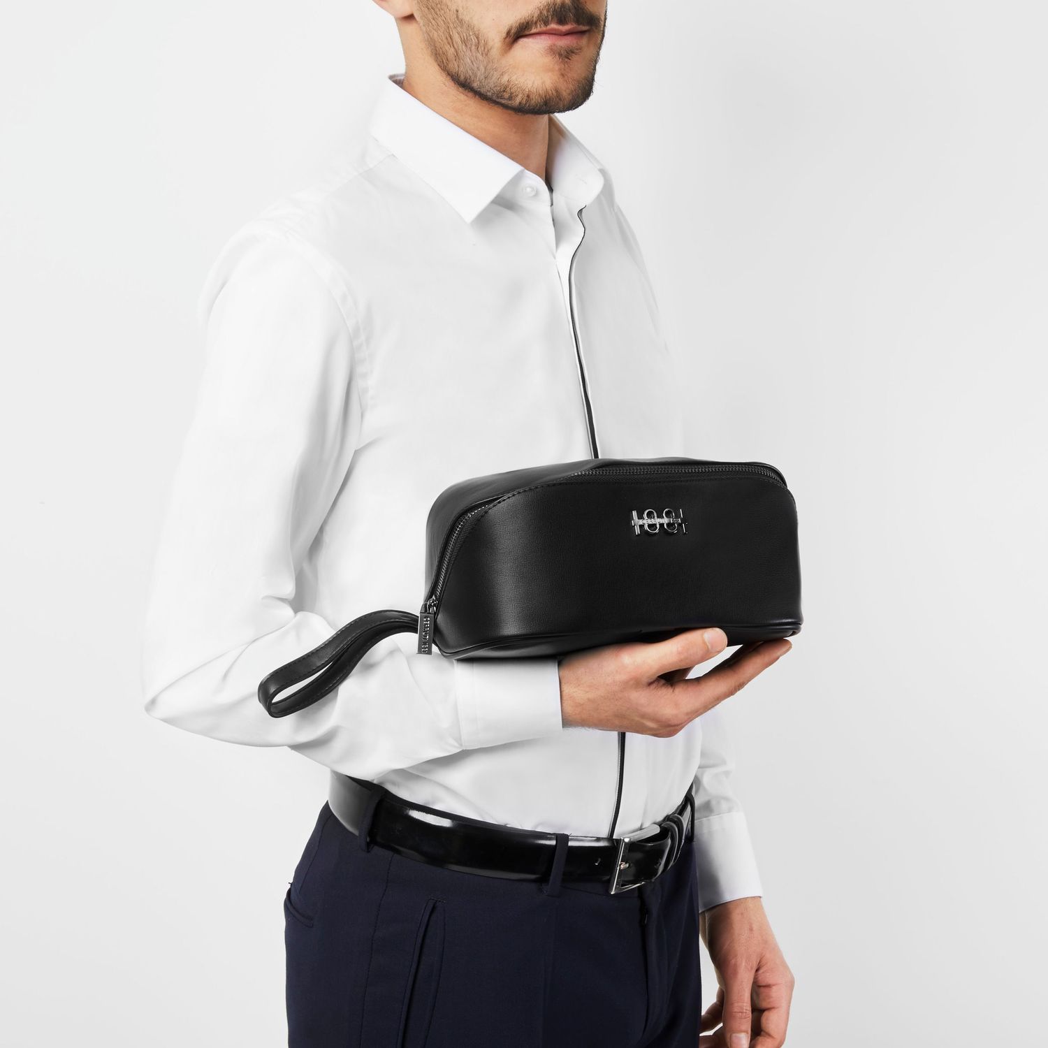 Torba kosmetyczna „Irving” jest luksusowa, kompaktowa i prosta. Wykonana z przepięknie fakturowanego materiału i ozdobiona nową tabliczką znamionową CERRUTI 1881, jej kształt jest nie tylko oryginalny, ale również bardzo praktyczny do zorganizowania wewnątrz torby weekendowej. Posiada również pasek na rękę.