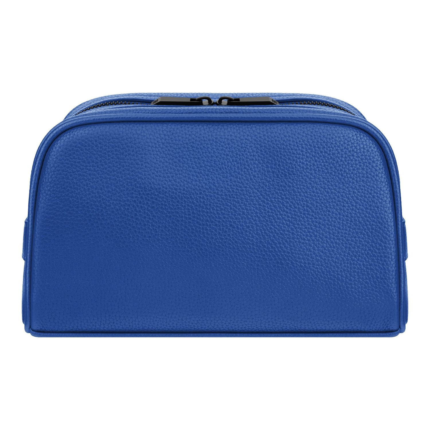 The Jefferson cosmetic bag in bright blue with matte black trims introduces a fashion-forward attitude while retaining timeless simplicity. The matte-grained texture brings a contemporary vibrancy, contrasted with matte black metal accents such as the new Cerruti 1881 plate and the angular signature zipper pullers engraved with RR. Its compact silhouette reveals a roamy and functional interior, enhanced by a monogramed lining and an inside zipped pocket. The result is a bold yet enduring travel companion, beautifully crafted and unmistakably refined.