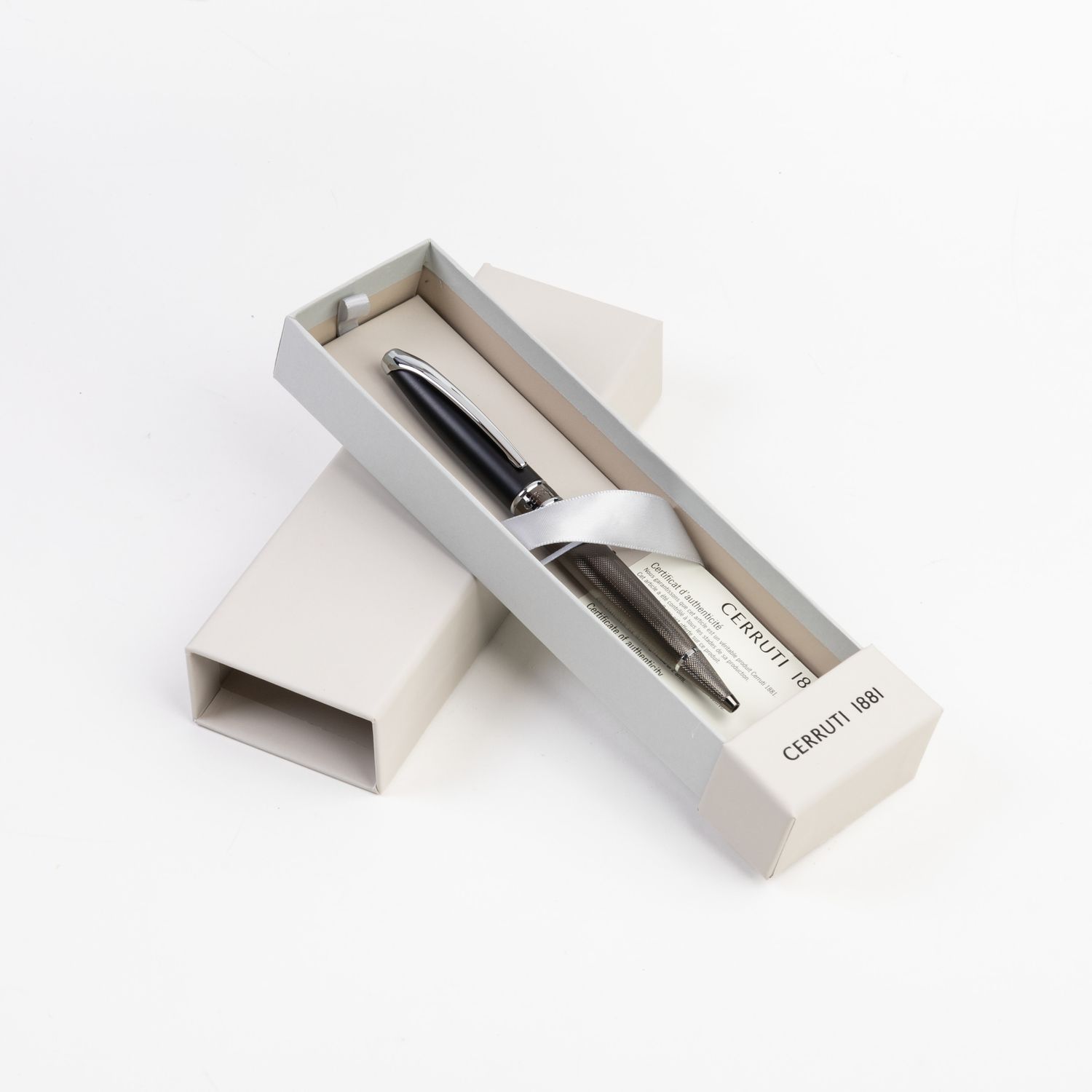 Pióro „Abbey” powstało na bazie jednej z najbardziej kultowych sylwetek linii piśmienniczej Cerruti. Jest teraz na nowo odkryty, łącząc matowe wykończenia z czarnego lakieru z wygrawerowanym diamentowym szlifem dolnej części korpusu, nowoczesny i elegancki.