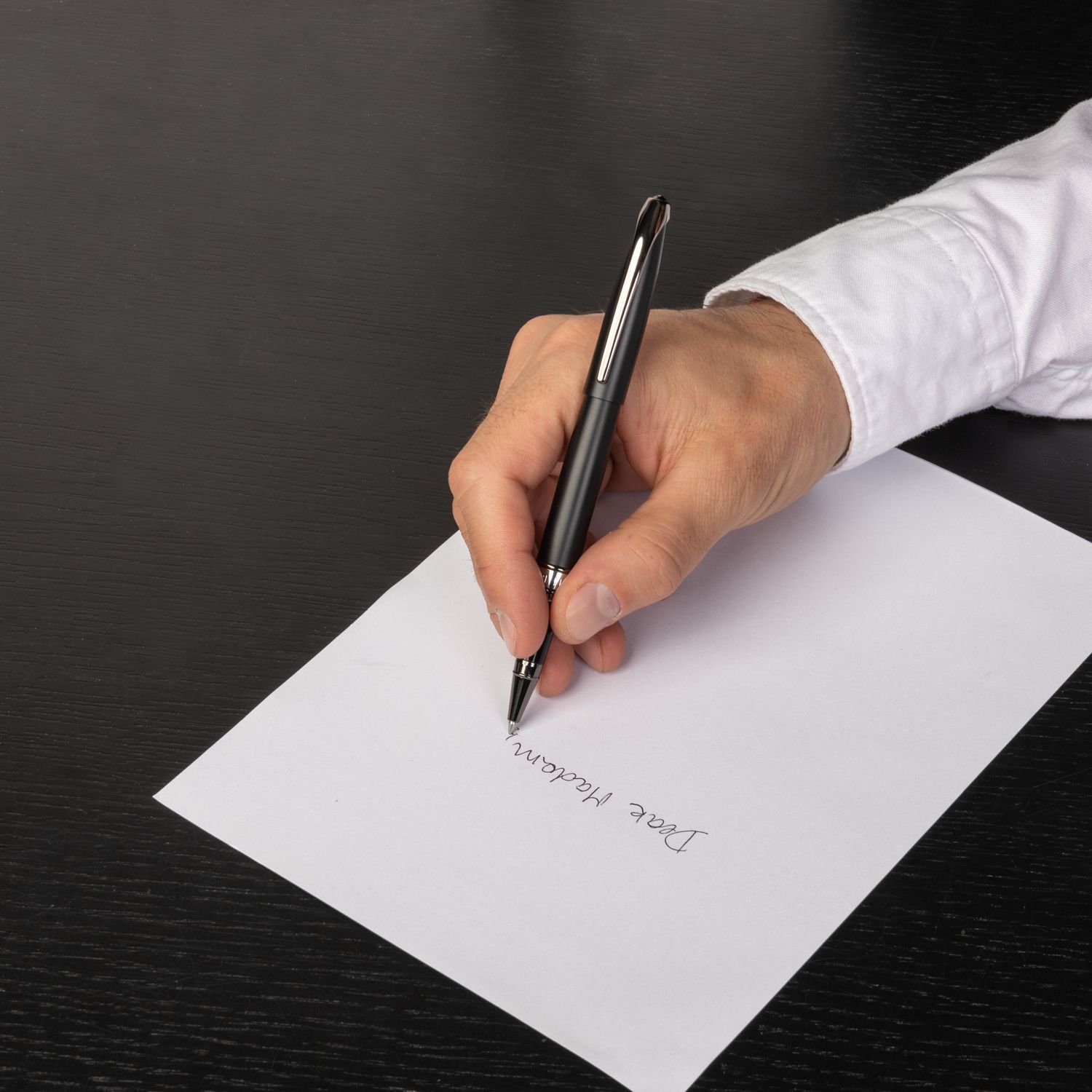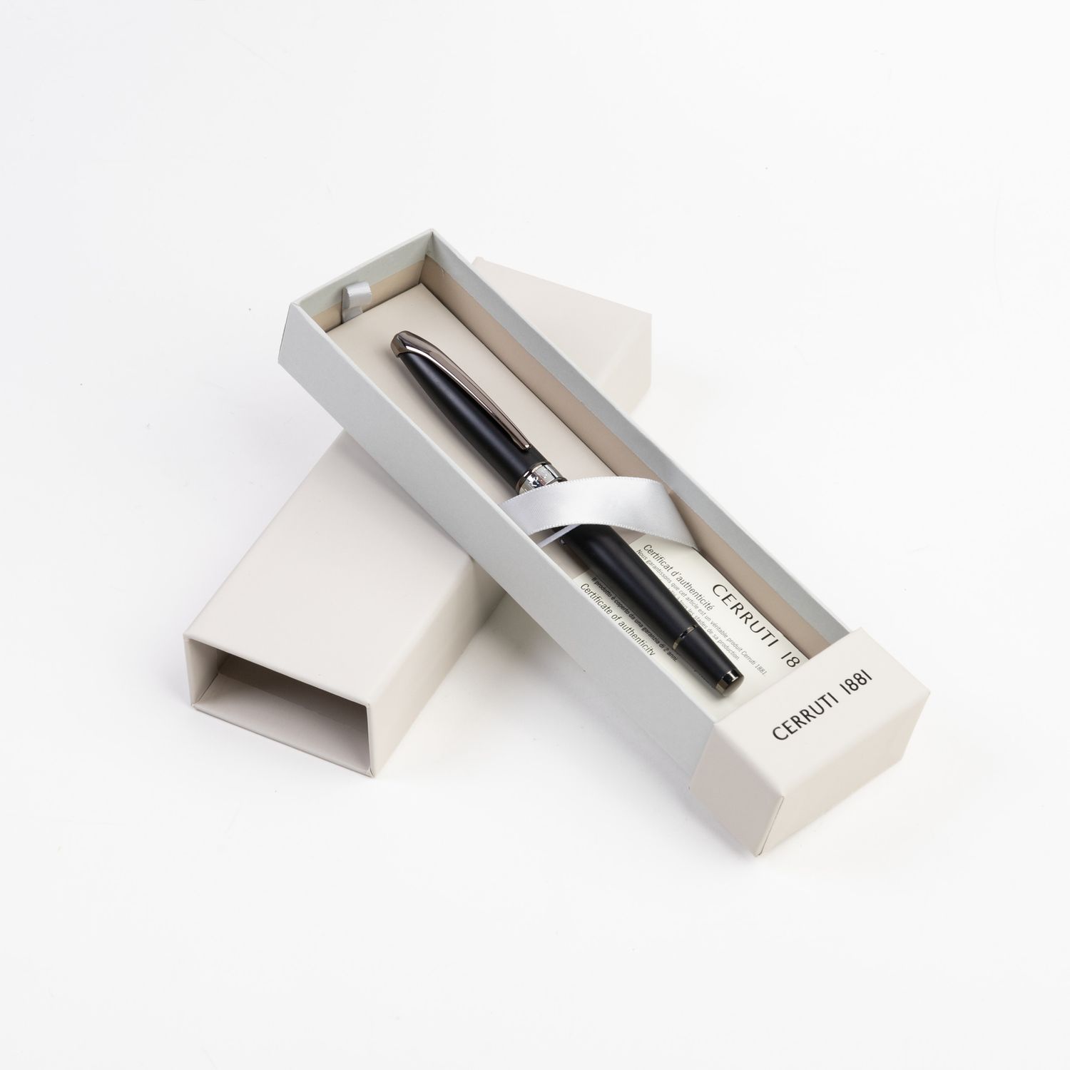 Pióro „Abbey” powstało na bazie jednej z najbardziej kultowych sylwetek linii piśmienniczej Cerruti. Teraz jest na nowo odkrywane w tym czarnym lakierze, wykończonym mieszanką chromowanych i pistoletowych wykończeń. Wkrótce stanie się ikoną.