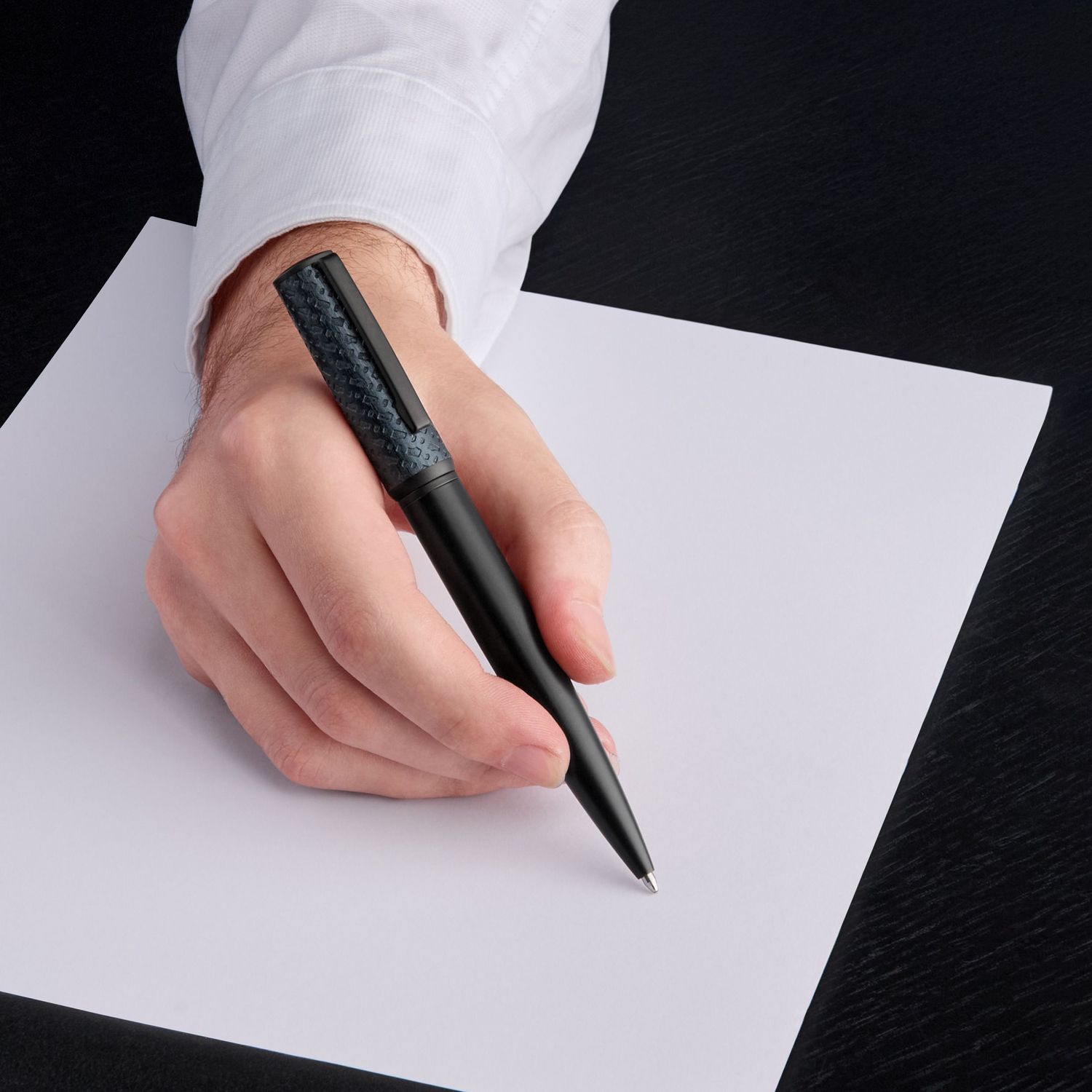To pióro oferuje innowacyjną aktualizację charakterystycznej sylwetki „Arche”, z kultowym monogramem BOSS na szczotkowanym aluminium. Ta stylowa kombinacja czerni i granatu łączy w sobie subtelną elegancję matowego metalu z rozpoznawalnym podpisem marki, oferując luksusowe wrażenia podczas pisania.