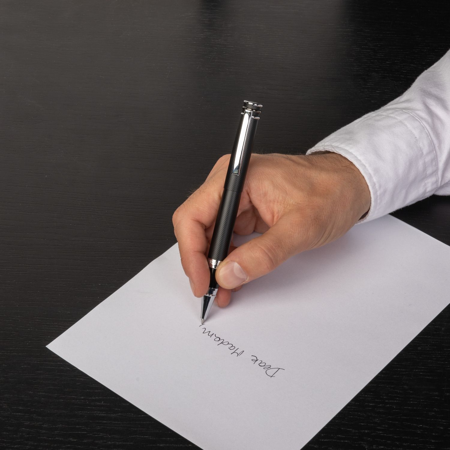 Pióro „Austin” jest zbudowane na jednej z najbardziej ikonicznych sylwetek Cerruti: pierścieniu. W tej nowej wersji, bawimy się z grawerowaną powierzchnią o diamentowym szlifie, ozdobioną pięknie platerowanymi metalowymi wykończeniami. Ta czarna wersja jest ozdobiona dwukolorowymi wykończeniami: gun i chrom. Bicolorowe metale są bardzo modne, a jednocześnie dyskretne.