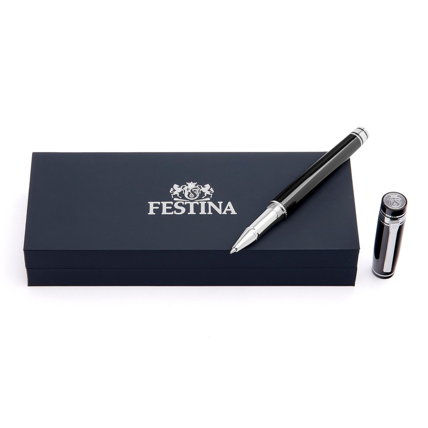 Nasza nowa sylwetka „Bold” jest imponująca, luksusowa i wyrazista. Jego nieco ponadgabarytowa rama jest oferowana w luksusowych, błyszczących lakierach wzmocnionych wyraźnymi chromowanymi akcentami, ze szczegółowymi grawerunkami. Ten wyróżniający się element piśmienniczy jest wykończony naszym kultowym, delikatnie wykonanym klipsem odsłaniającym symbol F. Bold Classic jest oferowany w palecie eleganckich kolorów: Ciemnozielony, Granatowy i Czarny. Górna część naszego długopisu Bold jest wygrawerowana z Festina Blazon, elementem projektu, który jest obecny w całej naszej istniejącej kolekcji piśmienniczej.