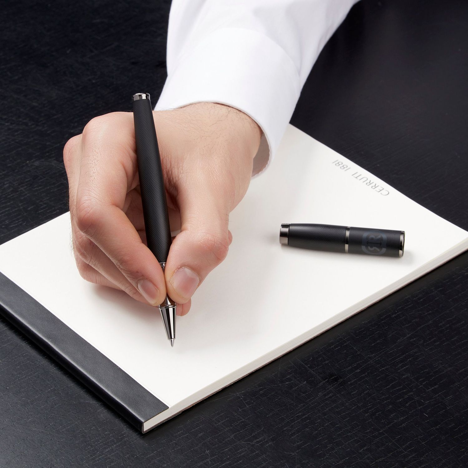 Pióro Cerruti 1881 „Brick” otrzymuje w tym roku elegancką metamorfozę w wersji czarno-pistoletowej. Jego grawerowana diamentami powierzchnia dodaje dodatkowego luksusu, uzupełnionego pięknymi wykończeniami pistoletu. Logo CRR jest subtelnie nadrukowane w tonacji ciemnoszarej. Zaskakująco nowoczesne, a jednocześnie proste pióro, dostępne w wersji kulkowej, rolkowej lub wiecznej.