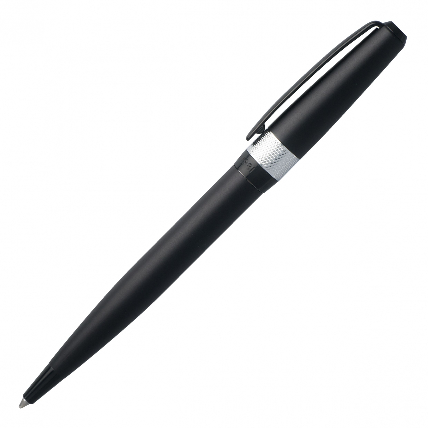 Ergonomiczny i nowoczesny, czarny długopis Canal posiada luksusowy, kontrastowy, chromowany pierścień wykonany z wzoru guilloché.