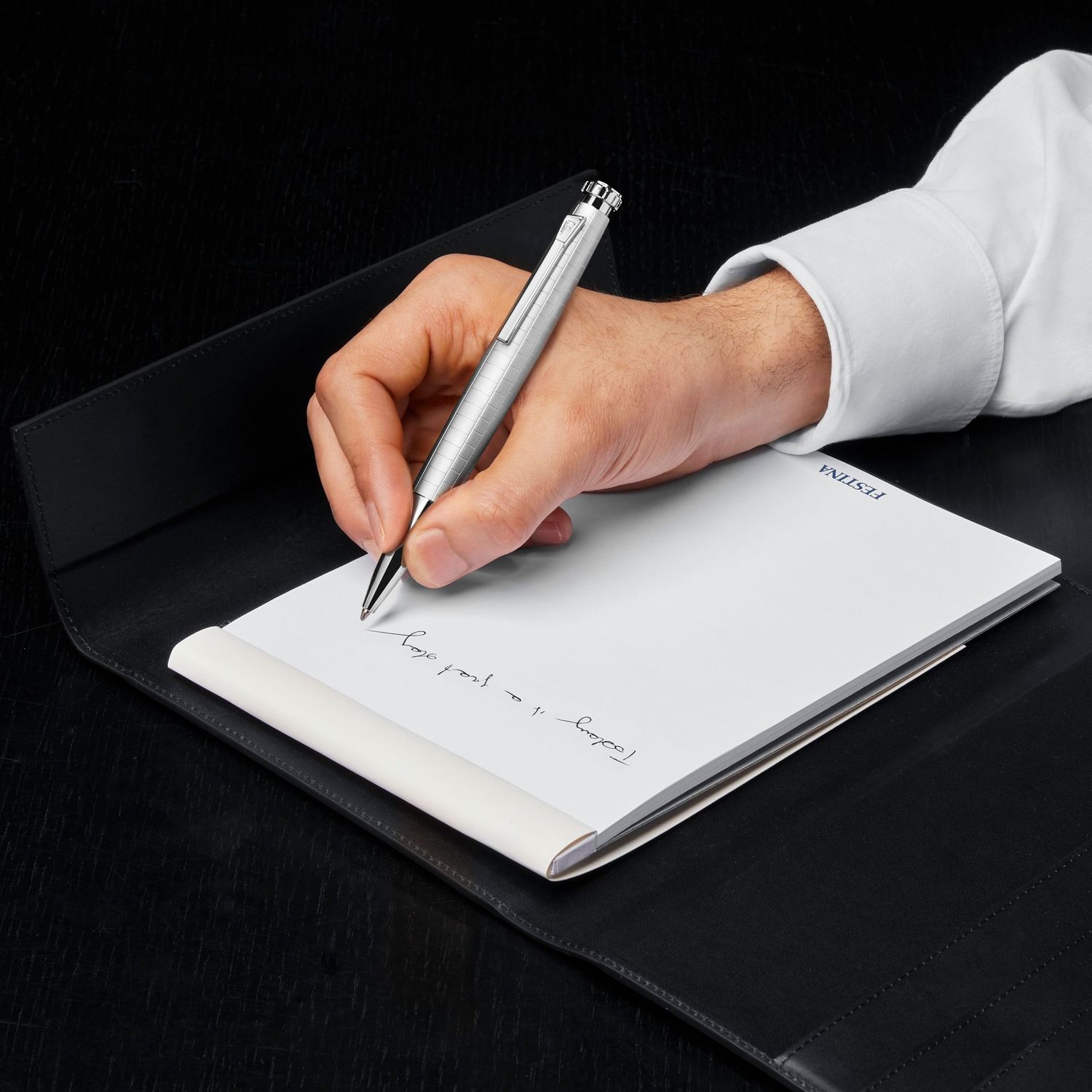 Nasz najlepiej sprzedający się długopis z linii chronobike, o stanowczo aktywnej strukturze i wysokiej jakości detalach, jest ponownie wydany w nowych wykończeniach. Ten zdecydowanie współczesny długopis jest bezpośrednio inspirowany tradycją zegarków marki FESTINA, ponieważ jest ozdobiony wzorem grawerowania inspirowanym luksusowymi metalowymi paskami zegarków. Pokryty minimalnym i luksusowym matowym metalem, jest dostępny w monochromatycznej czerni lub w chromie.