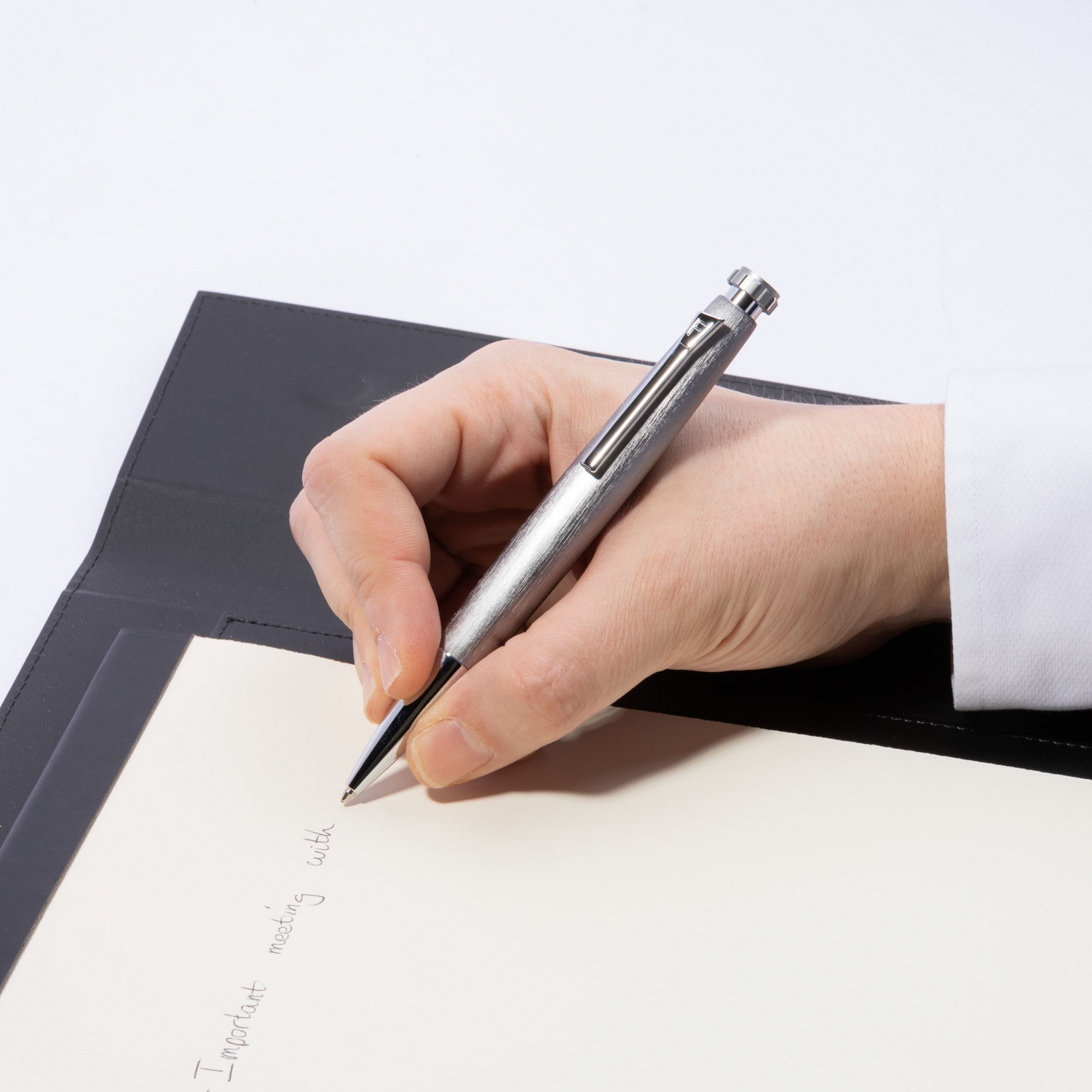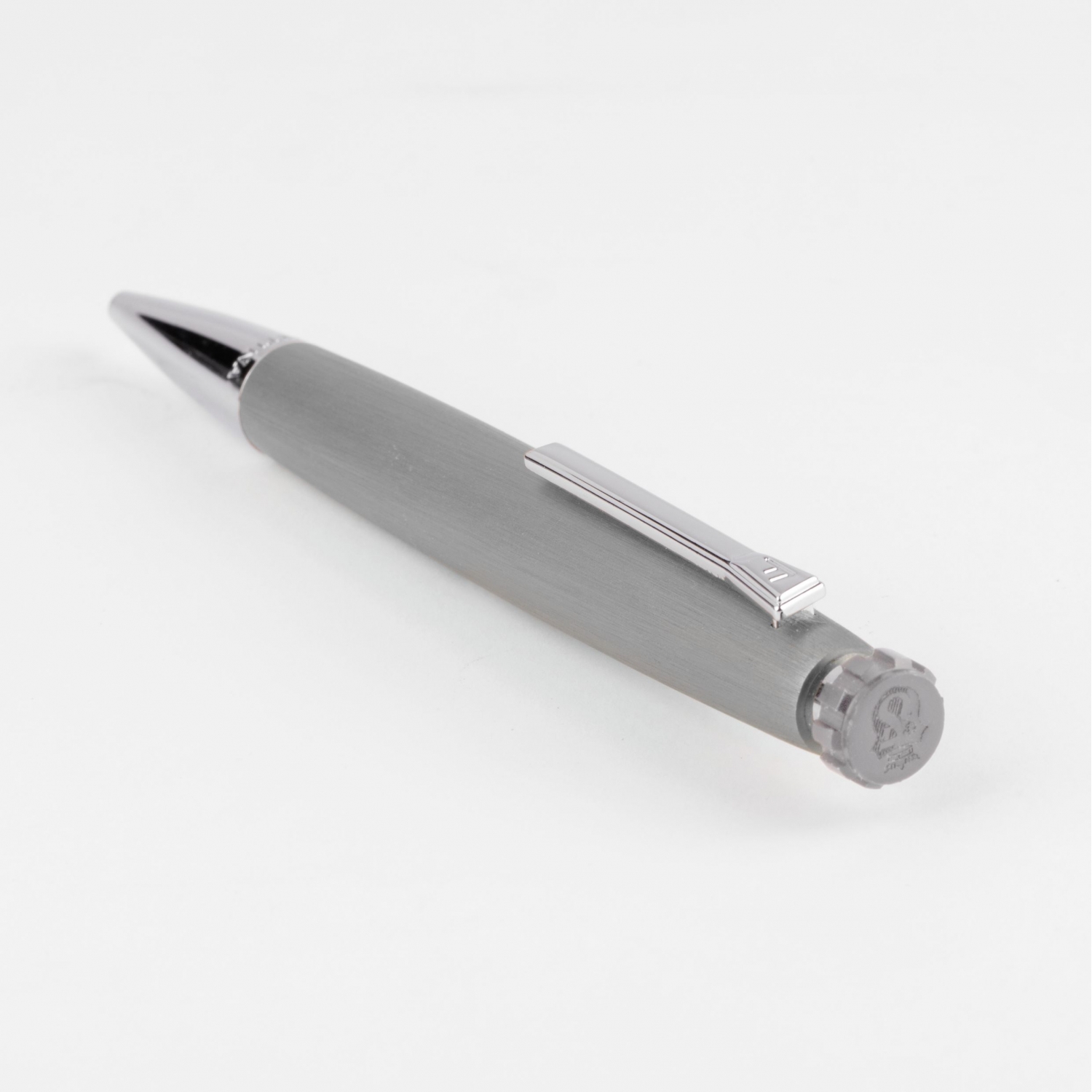 Łącząc chromowaną, szczotkowaną teksturę z delikatnymi, chropowatymi, metalowymi akcentami, długopis Chronobike o unikalnym, ogivoidalnym kształcie i na elementach firmowych, łączy w sobie sportowy i luksusowy charakter.