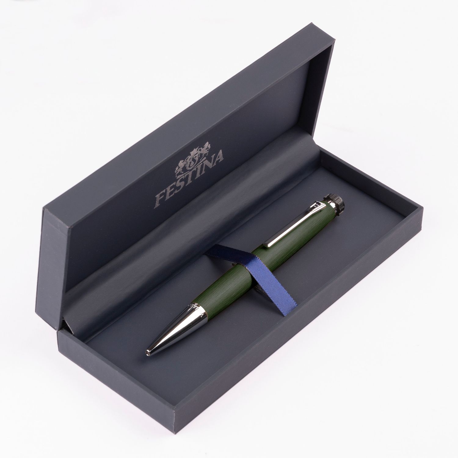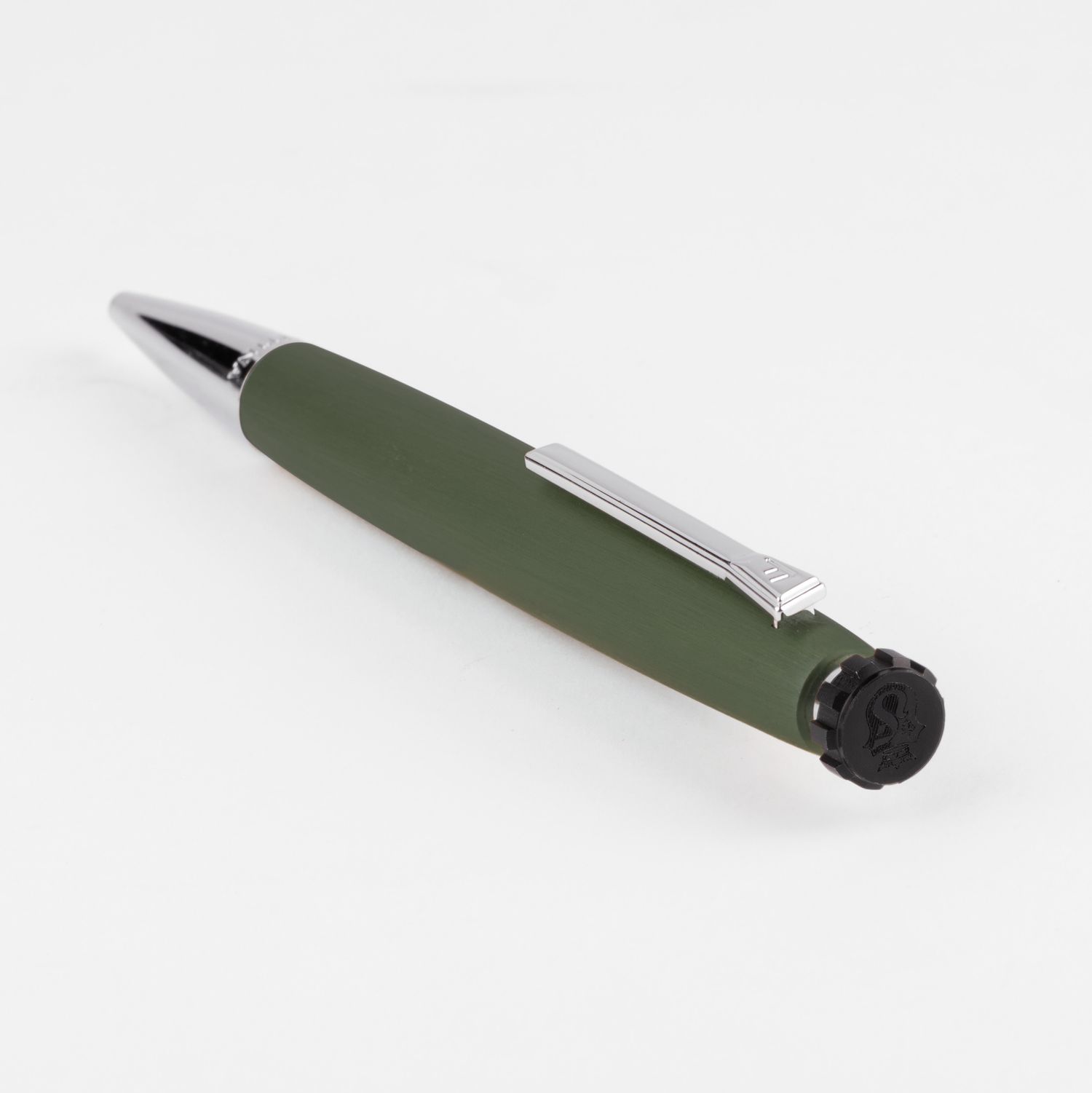 Łącząc szczotkowaną teksturę khaki z delikatnymi, chropowatymi, metalowymi akcentami, długopis Chronobike, o unikalnym, ogivoidalnym kształcie i na elementach markowych, łączy sportowy charakter z luksusem.