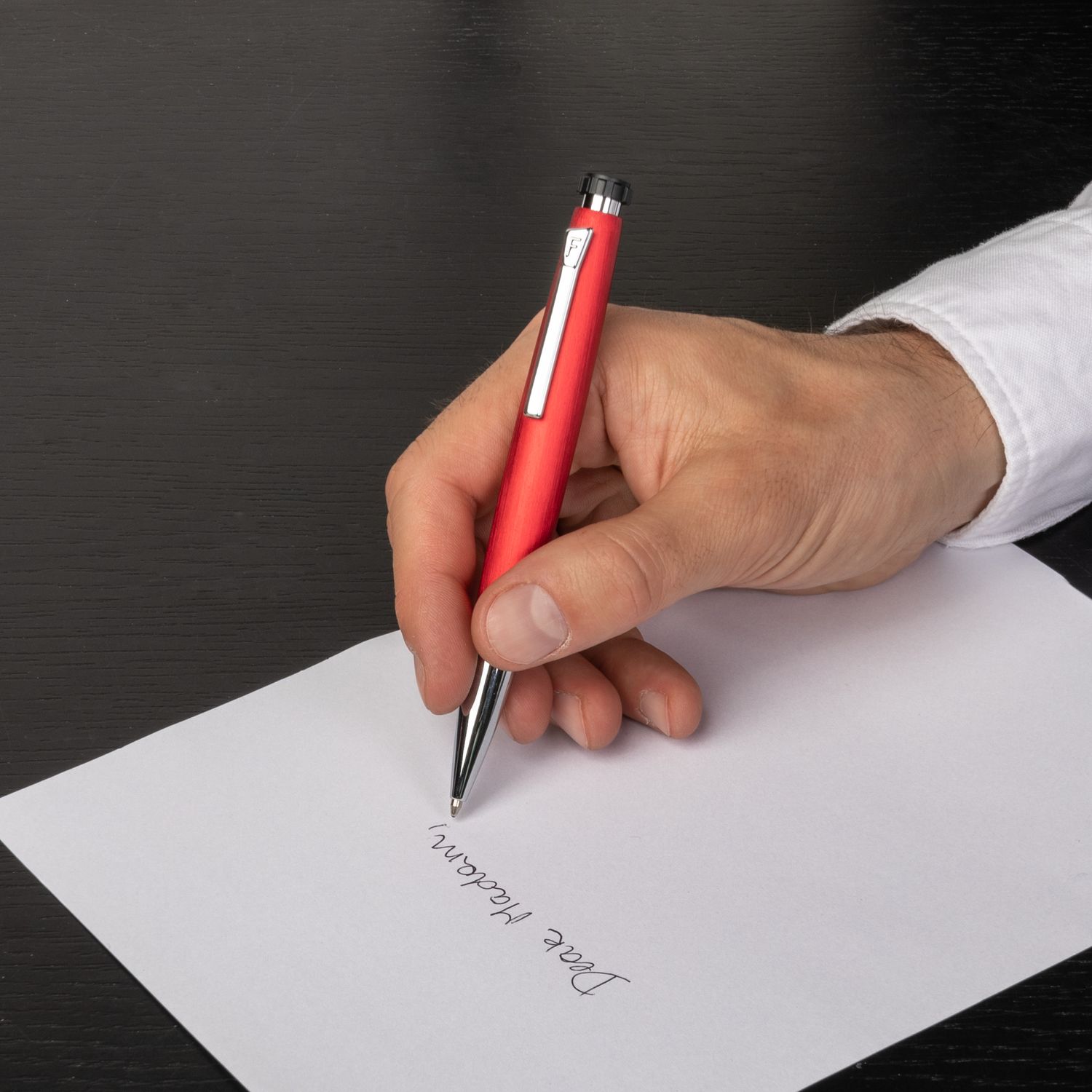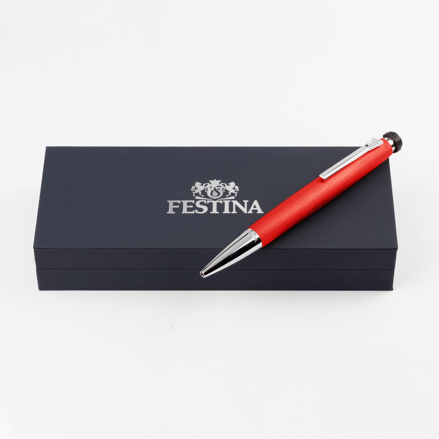Łącząc czerwoną, szczotkowaną teksturę z delikatnymi, chropowatymi, metalowymi akcentami, długopis Chronobike o unikalnym, ogivoidalnym kształcie i na elementach firmowych, łączy w sobie sportowy i luksusowy charakter.