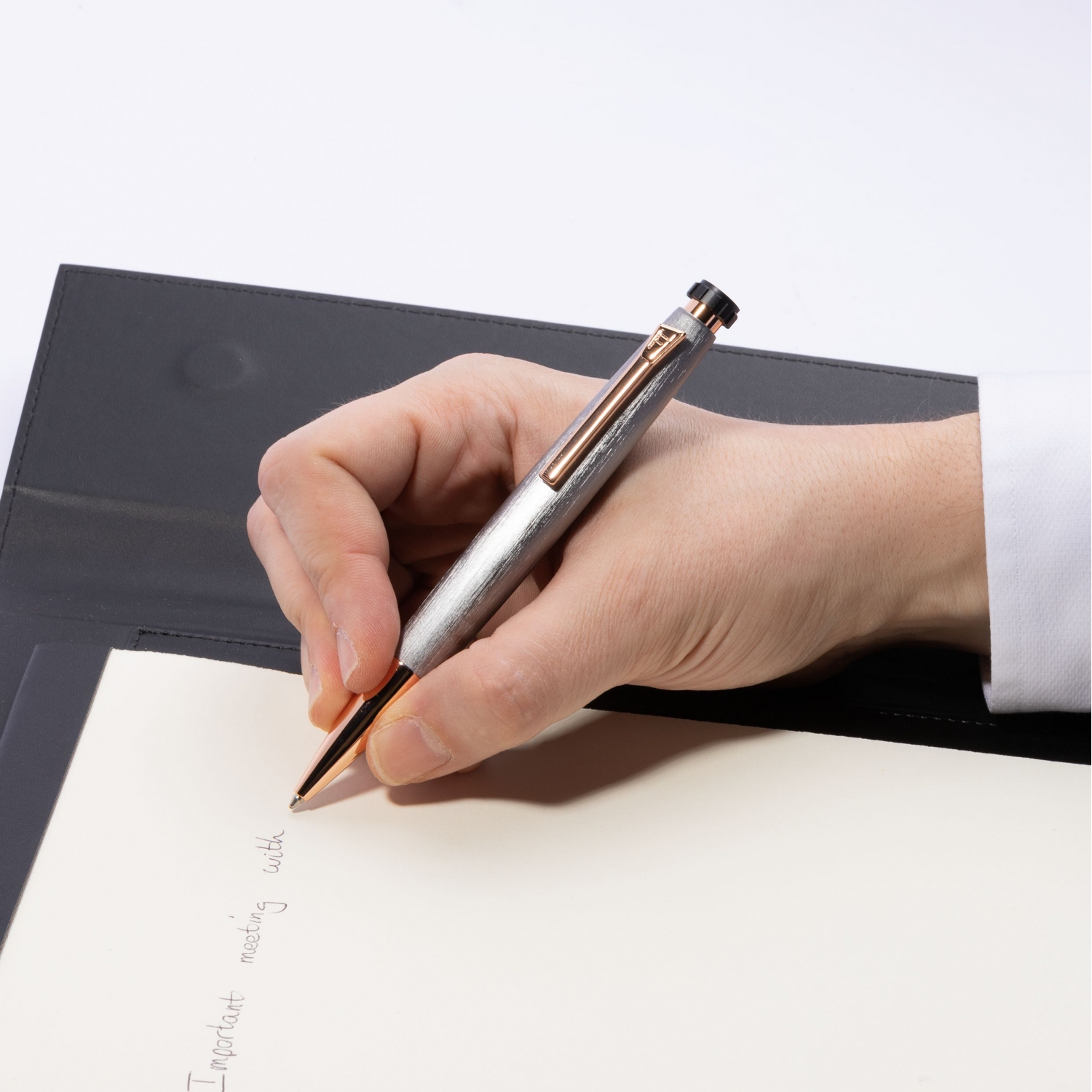 Łącząc chromowany metal o szczotkowanej fakturze i złoto-różowe metaliczne detale, długopis Chronobike, o unikalnym ostrołukowym kształcie nawiązującym do świata zegarmistrzowskiego, łączy sportowy wygląd z delikatnością.