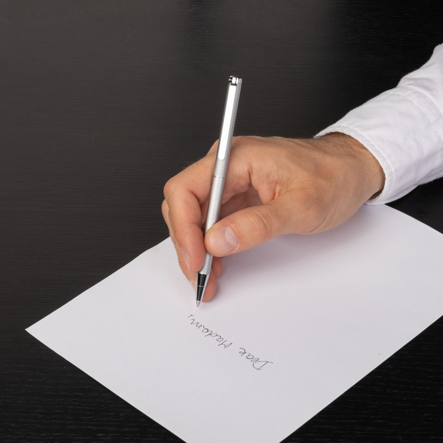 Przybory piśmienne Cloud charakteryzują się równowagą i funkcjonalnością, zachowując przy tym lekkość dzięki wyjątkowo smukłej sylwetce i minimalistycznej estetyce. Grawerowany wzór stanowi podniosły akcent i jest dostępny w trzech różnych odcieniach metalu. Ta czarna wersja jest zdecydowanie wyrazista i elegancka.